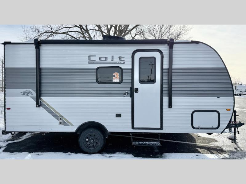 With any Colt travel trailer by Open Range RV, you can be sure you're getting a budget-friendly unit designed to fit your lifestyle! Each one is built to last with a PVC roofing membrane and built-in A-frame, plus there are nitrogen-filled radial tires and self-adjusting electric brakes for easy towing. You will appreciate the utilities that include 30-amp service, an A/C unit, and an on-demand tankless water heater. A few interior comforts include vinyl flooring throughout, solid hardwood cabinet doors, and residential grade kitchen countertops to make your space feel more like home. There are additional features available, depending on the edition you choose, along with available options to further customize your Colt travel trailer!