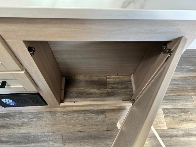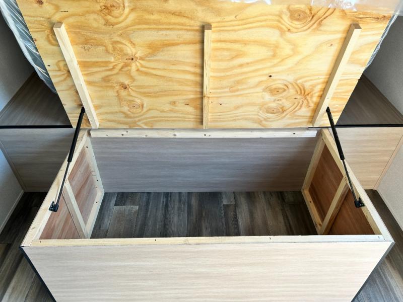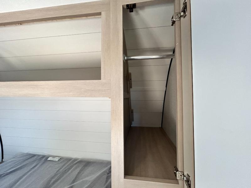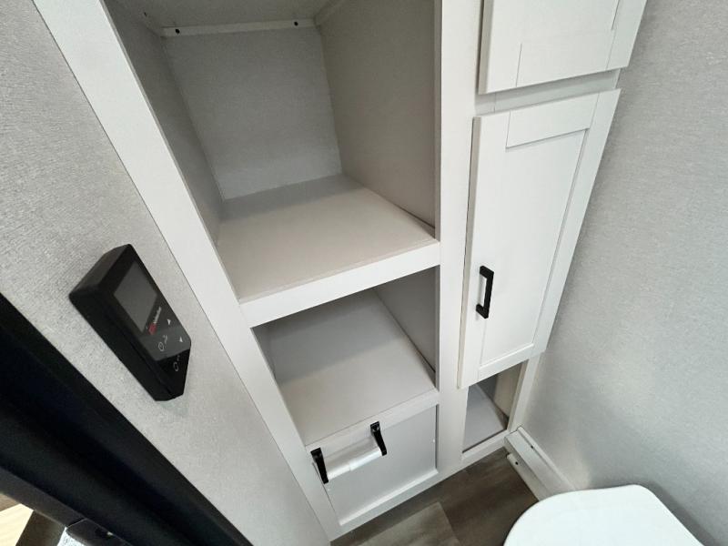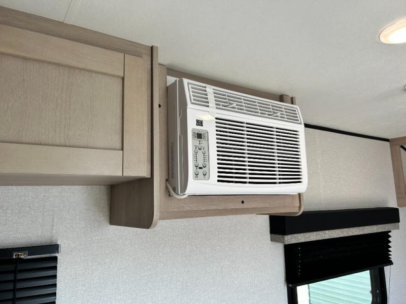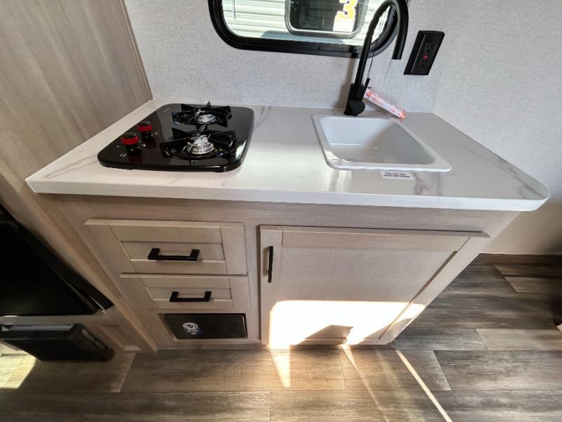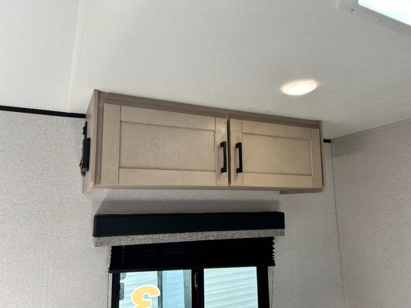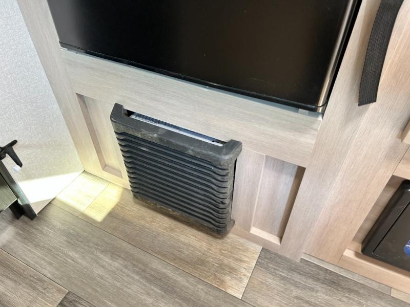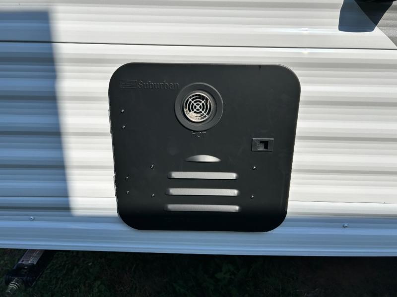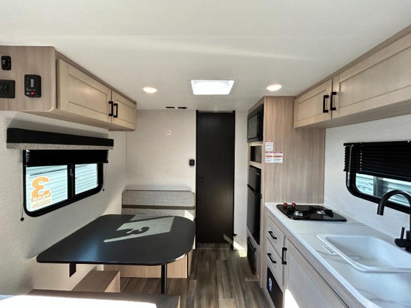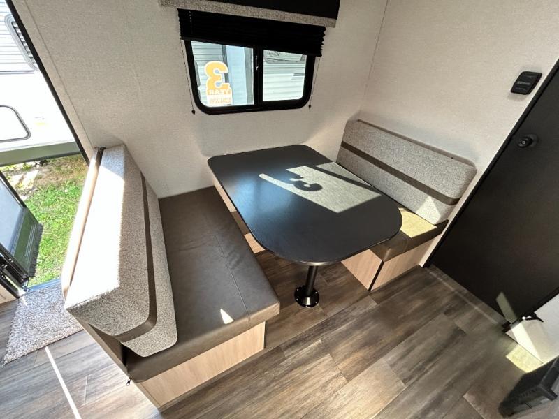 This travel trailer is just what the doctor ordered! Once you've loaded up the exterior storage, you can head out to the campground of your choice. The 10' power awning can be put out when you arrive, then you can relax in your camp chairs or head inside to make lunch on the two-burner cooktop. There is also a microwave oven for quick meals and a 12V refrigerator for food storage. A booth dinette provides a place to dine together, and you can convert it to sleeping space at night for one to two guests. You'll love the front queen bed that includes an overhead shelf and a wardrobe for your things, and this unit includes a full rear bath for added privacy. Here, you'll find a 24" x 32" shower, a toilet, and a linen closet plus shelves/storage for toiletries and towels!
