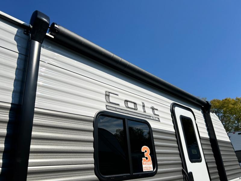 With any Colt travel trailer by Open Range RV, you can be sure you're getting a budget-friendly unit designed to fit your lifestyle! Each one is built to last with a PVC roofing membrane and built-in A-frame, plus there are nitrogen-filled radial tires and self-adjusting electric brakes for easy towing. You will appreciate the utilities that include 30-amp service, an A/C unit, and an on-demand tankless water heater. A few interior comforts include vinyl flooring throughout, solid hardwood cabinet doors, and residential grade kitchen countertops to make your space feel more like home. There are additional features available, depending on the edition you choose, along with available options to further customize your Colt travel trailer!