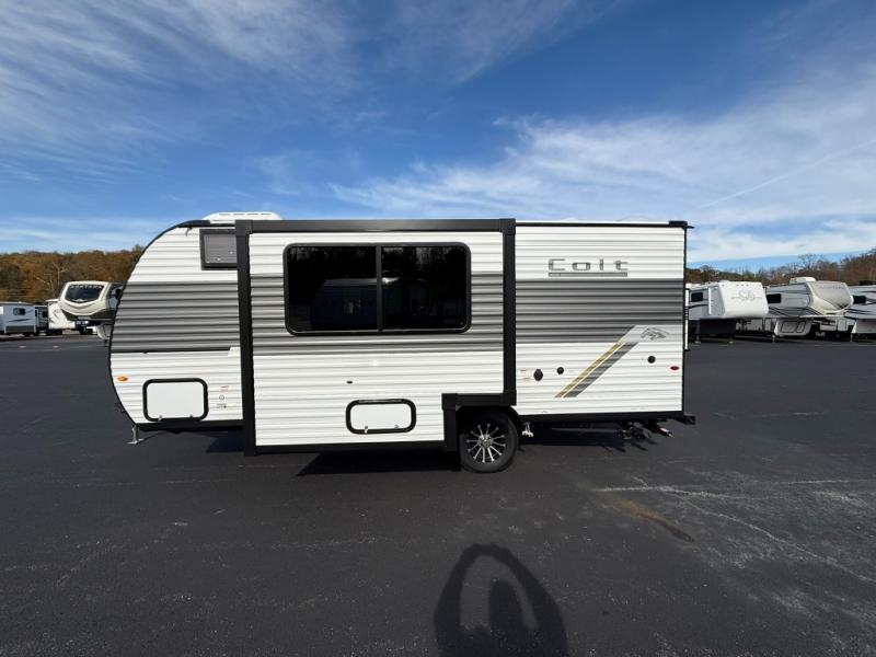 With any Colt travel trailer by Open Range RV, you can be sure you're getting a budget-friendly unit designed to fit your lifestyle! Each one is built to last with a PVC roofing membrane and built-in A-frame, plus there are nitrogen-filled radial tires and self-adjusting electric brakes for easy towing. You will appreciate the utilities that include 30-amp service, an A/C unit, and an on-demand tankless water heater. A few interior comforts include vinyl flooring throughout, solid hardwood cabinet doors, and residential grade kitchen countertops to make your space feel more like home. There are additional features available, depending on the edition you choose, along with available options to further customize your Colt travel trailer!