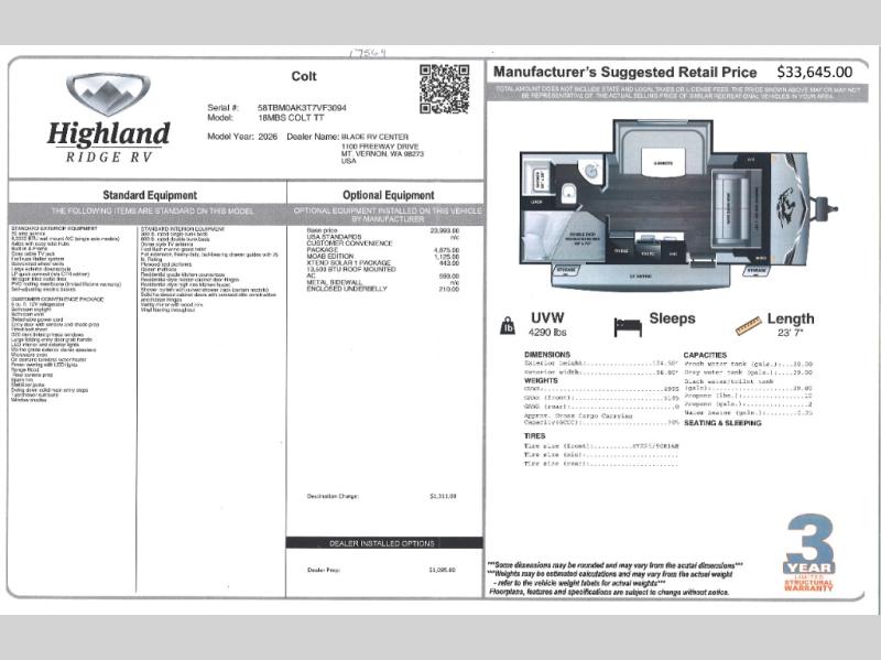 New 2026 Open Range RV Colt 18MBS Travel Trailer