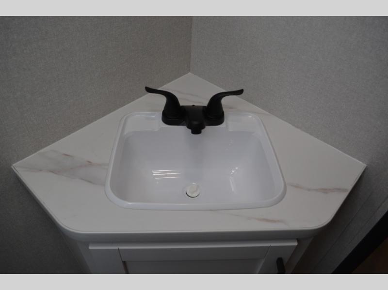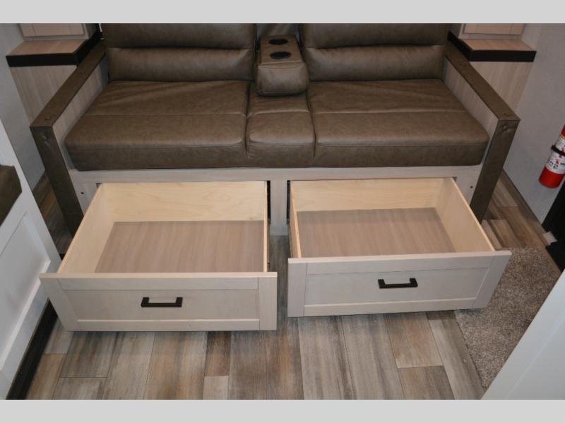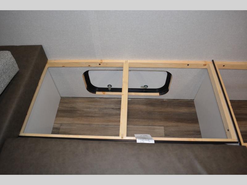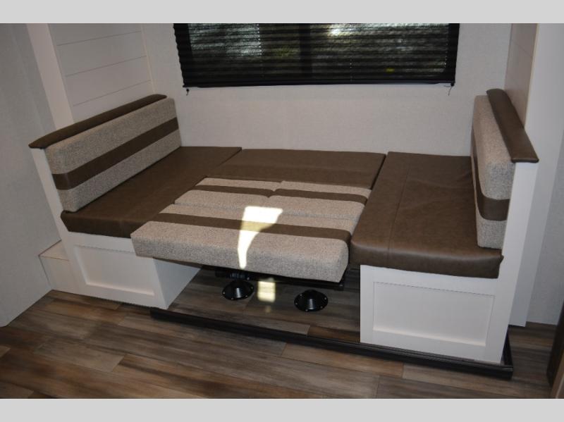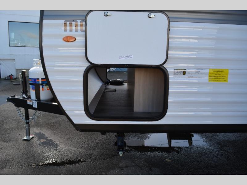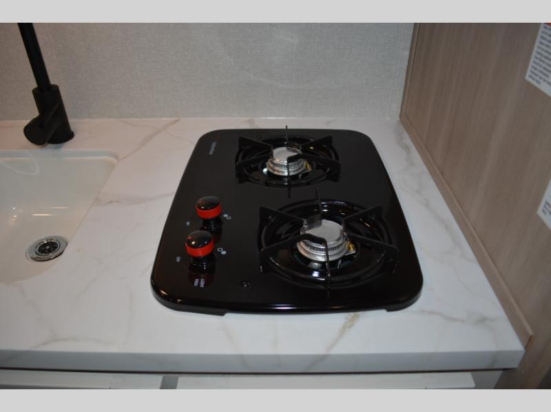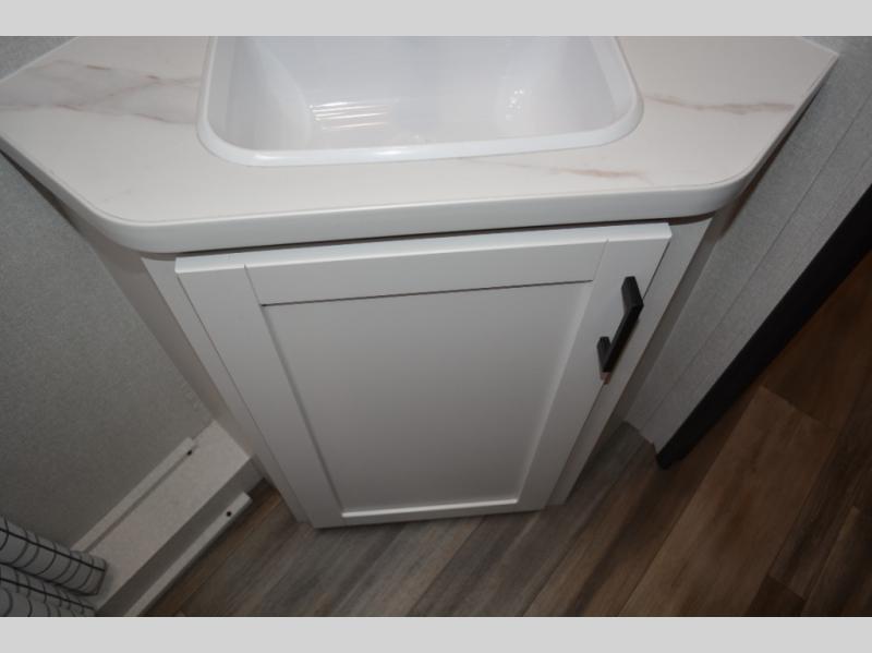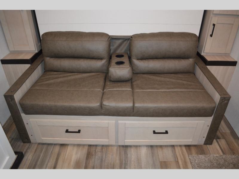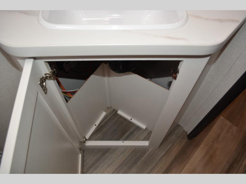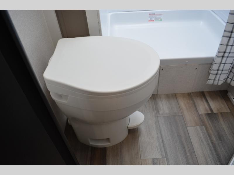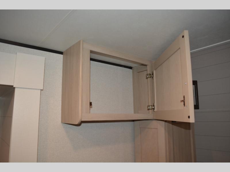 This travel trailer features compact sleeping spaces thanks to the double-size bunk beds in the rear corner, and the private full bath is right next to the bunks for easy nighttime use! You'll have the front Murphy bed all to yourselves, and in the morning, you can fold it away to sit on the jack-knife sofa. A cooktop and microwave oven will let you make meals each day, and there is a 12V refrigerator to keep your cold items fresh. Outside, you'll enjoy the 13' power awning for added shade, and there are two exterior storage compartments to keep fishing poles, hiking gear and more!