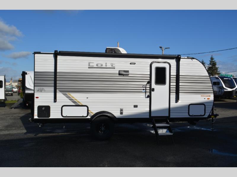 With any Colt travel trailer by Open Range RV, you can be sure you're getting a budget-friendly unit designed to fit your lifestyle! Each one is built to last with a PVC roofing membrane and built-in A-frame, plus there are nitrogen-filled radial tires and self-adjusting electric brakes for easy towing. You will appreciate the utilities that include 30-amp service, an A/C unit, and an on-demand tankless water heater. A few interior comforts include vinyl flooring throughout, solid hardwood cabinet doors, and residential grade kitchen countertops to make your space feel more like home. There are additional features available, depending on the edition you choose, along with available options to further customize your Colt travel trailer!