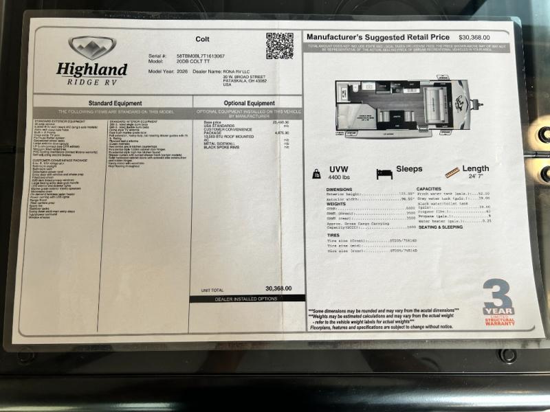 New 2026 Open Range RV Colt 20DB Travel Trailer