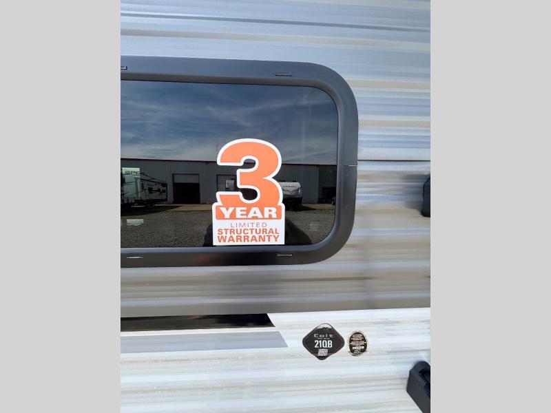 With any Colt travel trailer by Open Range RV, you can be sure you're getting a budget-friendly unit designed to fit your lifestyle! Each one is built to last with a PVC roofing membrane and built-in A-frame, plus there are nitrogen-filled radial tires and self-adjusting electric brakes for easy towing. You will appreciate the utilities that include 30-amp service, an A/C unit, and an on-demand tankless water heater. A few interior comforts include vinyl flooring throughout, solid hardwood cabinet doors, and residential grade kitchen countertops to make your space feel more like home. There are additional features available, depending on the edition you choose, along with available options to further customize your Colt travel trailer!