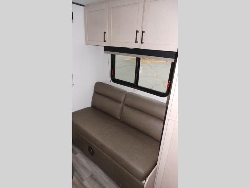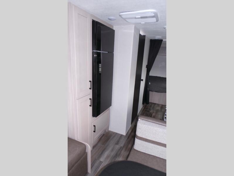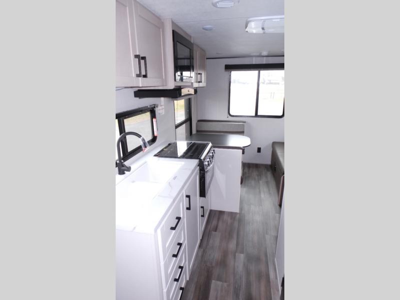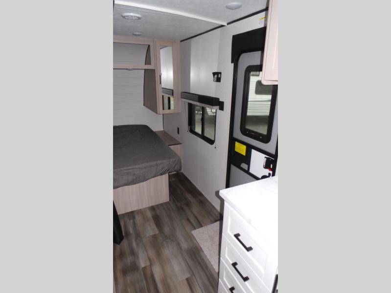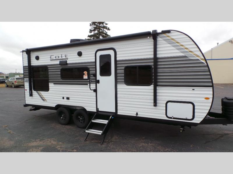Upgrade and experience more comfort with the new Colt Travel Trailer Series, our most budget-friendly RV lineup. Available in single or double axle, standard or CTR Edition, the Colt offers 15 versatile floorplans designed to fit your lifestyle. Inside, you’ll enjoy residential-style features like solid countertops, hidden-hinge cabinetry, a high-rise kitchen faucet, and a 12V refrigerator. The main sleeping area includes a standard queen mattress for home-like comfort, while the bathroom is equipped with a marine-grade foot-flush toilet, tub/shower surround, skylight, vent, and an on-demand tankless water heater that delivers long hot showers. Durable swing-down solid steps provide a sturdy entry every time, giving you confidence with each adventure. Perfect for first-time RVers or anyone seeking an affordable, lightweight upgrade, the Colt Travel Trailer makes camping easy, comfortable, and accessible.
