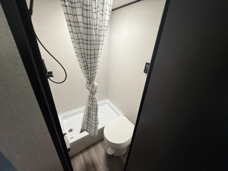 If you enjoy camping with a larger group, this travel trailer is perfect for you! There are double-size bunks in the back, which are right next to the private bath with a toilet and 40" shower. You can take the front queen bed with dual wardrobes, and any other guests can convert the sofa and booth dinette to sleeping space. A two-burner cooktop will let you make breakfast for everyone in the morning, and a 12V refrigerator will keep your perishables fresh!