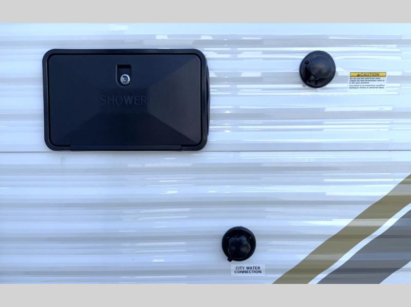 With Double Bunks, Private Queen Bedroom, Outdoor Kitchen, On Demand Tankless Water Heater, Outdoor Shower, Aluminum Entry Steps, Pantry, Booth Dinette, Jack Knife Sofa, Entertainment Center and Customer Convenience Package