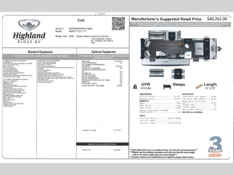| Awning Info | 18' Power w/LED Lights |