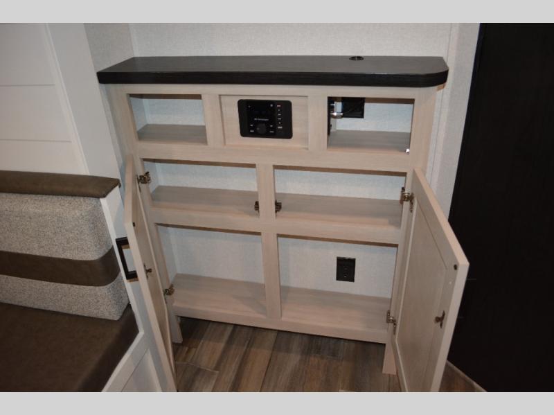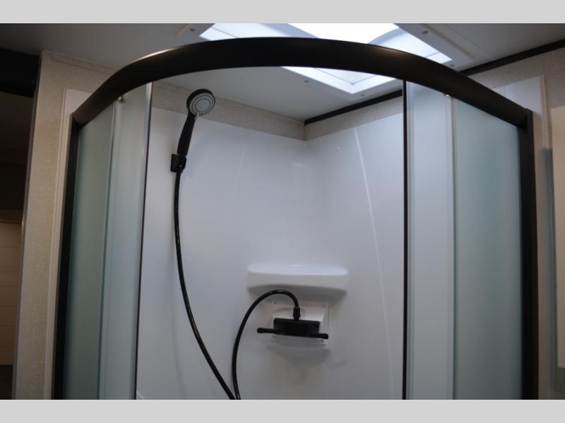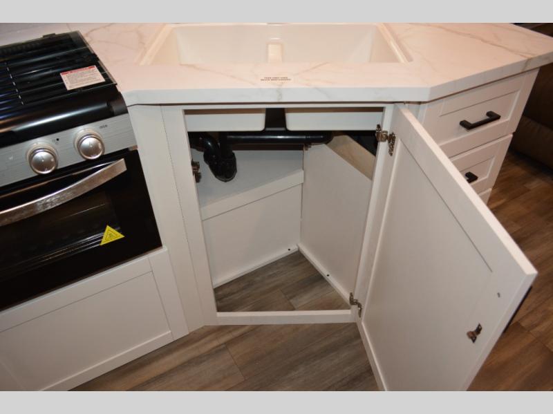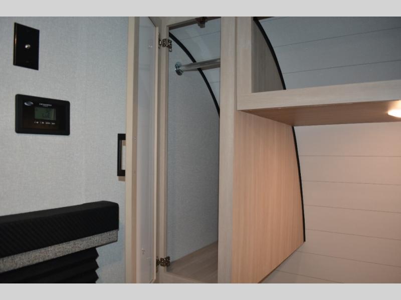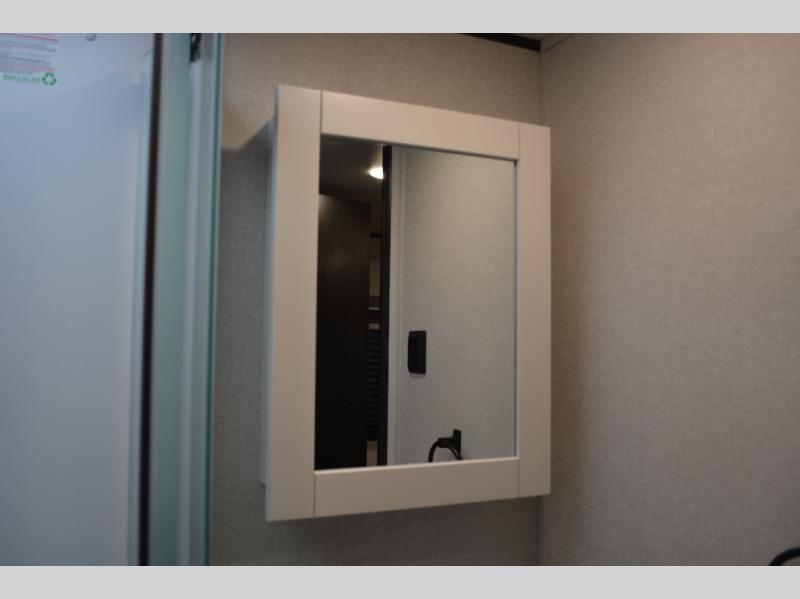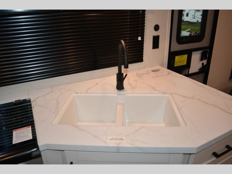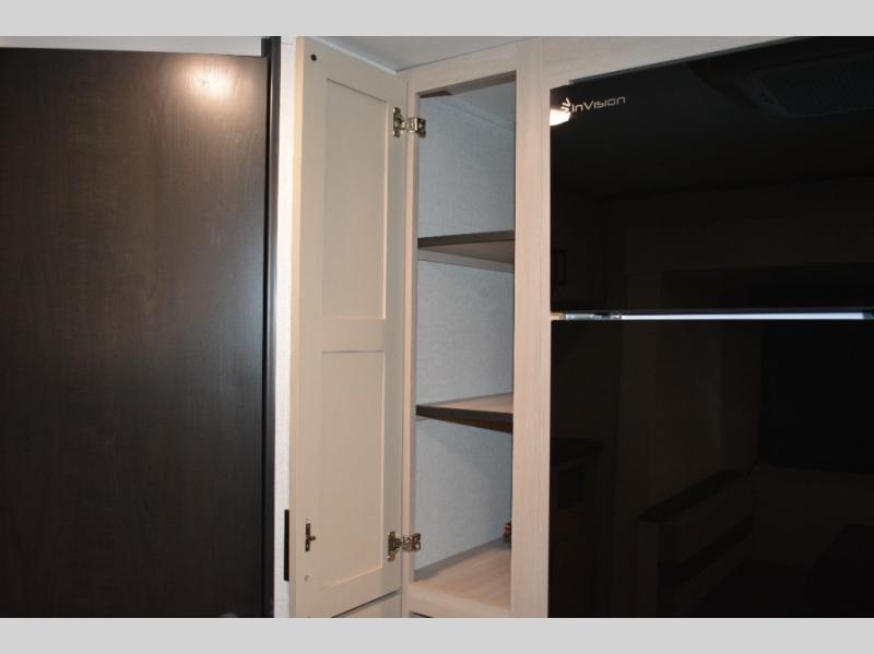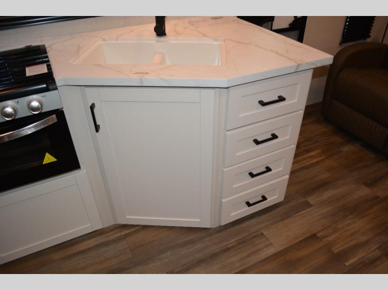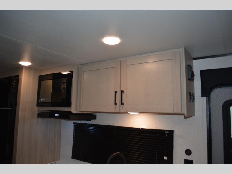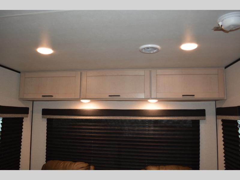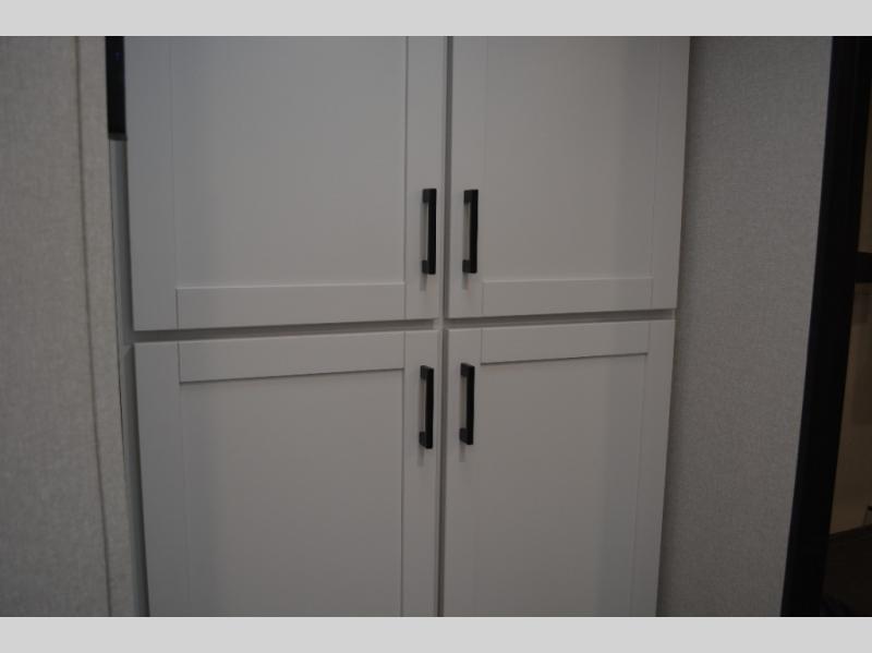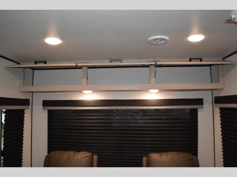 With dual entry doors in this unit, you can enter in through the front master bedroom or the rear living room! The dual lounge chairs in the back will let you relax with a book and your coffee, and there is a large slide out with a jack-knife sofa and booth dinette for additional seating spaces. The chef of your group can make meals on the three-burner cooktop or in the microwave oven, and there is a pantry for dry goods or snacks. The walk-thru bath is easily accessible for everyone to use, and the front master bedroom with a 60" x 74" RV queen bed will make you feel right at home!