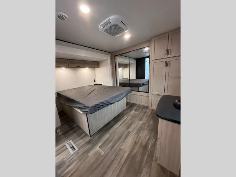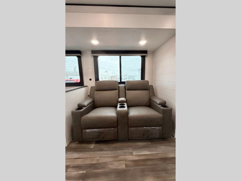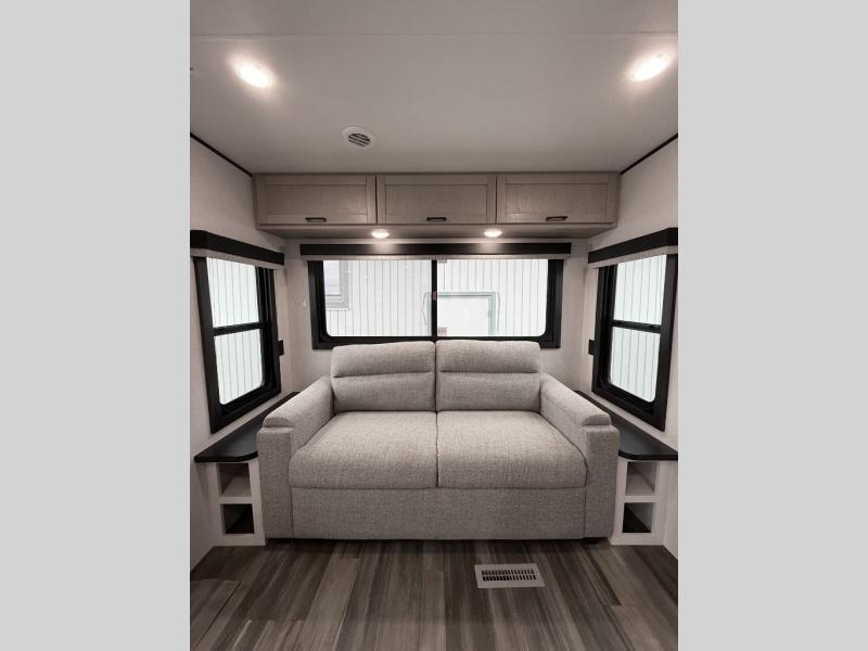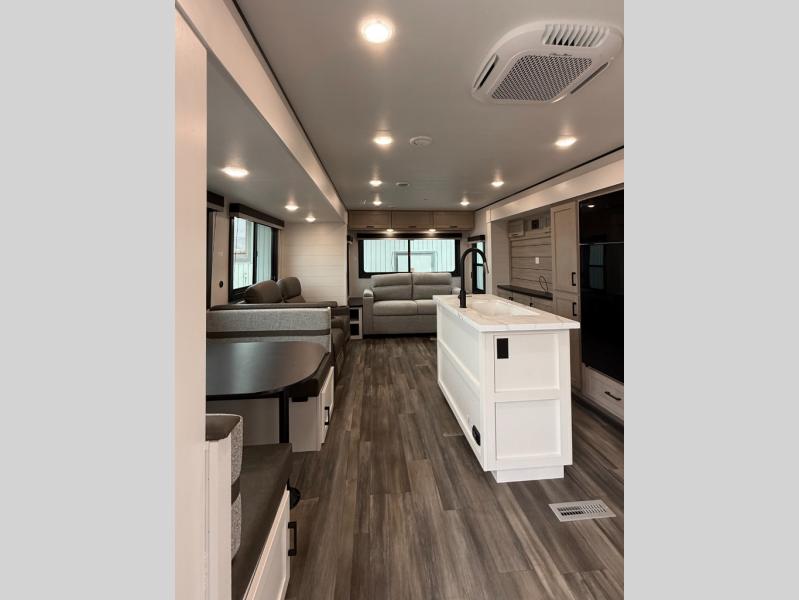 With Upgrades Two 15K A/C and Tri-fold Sofa. Dual Opposing Rear Living, Kitchen Island, On Demand Water Heater, Private Queen Bed Slide, Fireplace, Pantry, Hutch, Washer / Dryer Prep, Customer Convenience and Select Packages