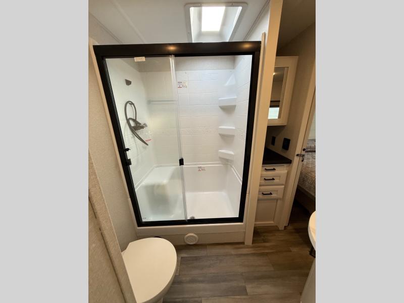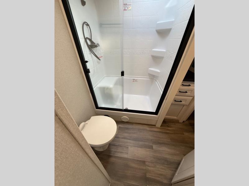 With any Open Range RV Open Range travel trailer, the 100" wide body frame and the ACCU-SLIDE slide system with 42" deep 4-corner compression offer more interior space. Inside, you will also enjoy residential vinyl flooring, Raised panel hardwood doors, and two air conditioners with quiet residential return air. The exterior equipment includes Equa-Flex axle suspension, self-adjusting electric brakes, and the Norco 5.1 stabilizer system with BAL lock arms. You will also enjoy the Four Season package that offers ducted heat to underbelly with cold air return, an enclosed exterior docking station, a heated and enclosed underbelly, and a high-performance furnace to mention a few highlights.