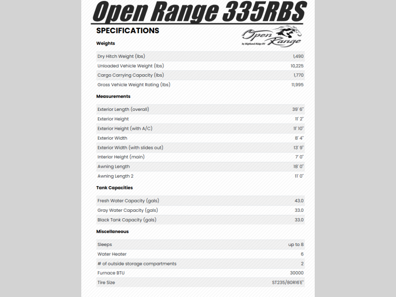 Open Range RV Open Range travel trailer 335RBS highlights: