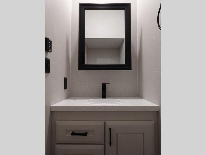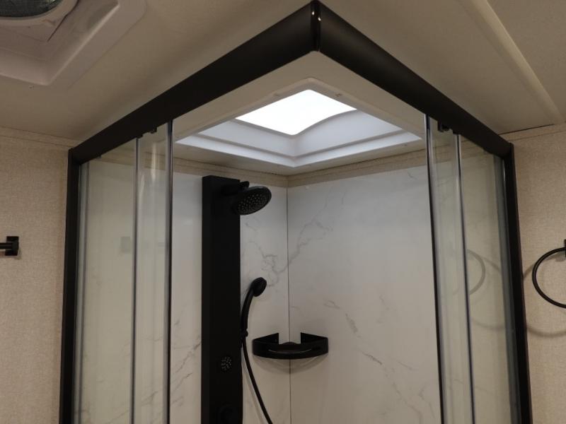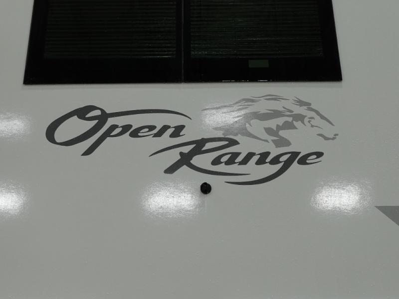 With any Open Range 3X fifth wheel by Highland Ridge, you will enjoy residential luxuries and an exceptional build. The TuffShell construction includes vacuum bonded laminated fiberglass and welded aluminum frames for added strength, and the PVC roofing membrane is ultra durable. You can plan to camp year around or go full-time since there is a mandatory Four Season Package that includes a heated and enclosed underbelly, a 40K BTU high-performance furnace, double insulated baggage doors, and more. The residential features continue on with the mandatory Executive Package with the TravelLINK Smart RV system, Keyed-Alike entry and baggage doors, painted fiberglass front cap with LED lighting, and three 15,000 BTU A/C units with quiet residential return air. Inside, you'll enjoy GE Profile kitchen appliances, sleek square windows with integrated blinds, ceramic subway tile backsplash, a glass shower door, and the list of amenities goes on!