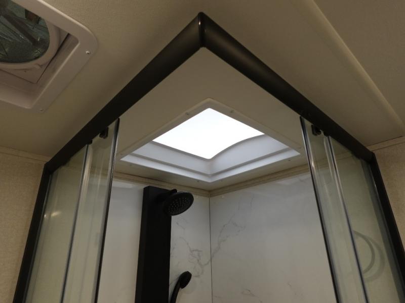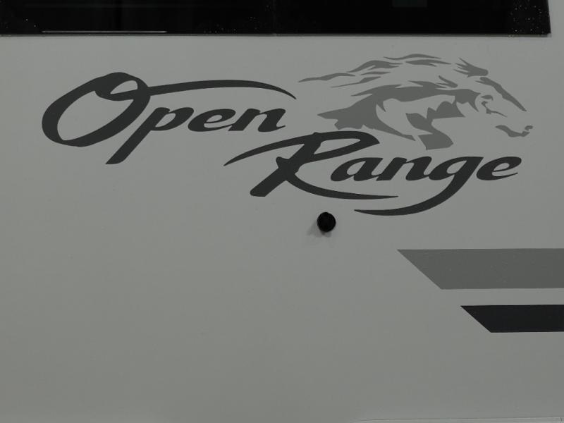 With any Open Range 3X fifth wheel by Highland Ridge, you will enjoy residential luxuries and an exceptional build. The TuffShell construction includes vacuum bonded laminated fiberglass and welded aluminum frames for added strength, and the PVC roofing membrane is ultra durable. You can plan to camp year around or go full-time since there is a mandatory Four Season Package that includes a heated and enclosed underbelly, a 40K BTU high-performance furnace, double insulated baggage doors, and more. The residential features continue on with the mandatory Executive Package with the TravelLINK Smart RV system, Keyed-Alike entry and baggage doors, painted fiberglass front cap with LED lighting, and three 15,000 BTU A/C units with quiet residential return air. Inside, you'll enjoy GE Profile kitchen appliances, sleek square windows with integrated blinds, ceramic subway tile backsplash, a glass shower door, and the list of amenities goes on!