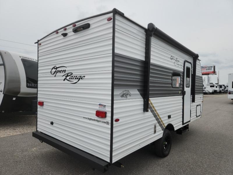 The affordable Open Range Conventional travel trailers by Highland Ridge are ready to meet your camping needs! You will appreciate the durable Magnum Roof system, plus each model is constructed with black front diamond plate protection, 5/8" main floor decking, and self-adjusting electric brakes with E-Z Lube axles for smooth towing. The 81" interior height means you won't feel cramped when relaxing with friends and family, and the residential vinyl flooring throughout is easy to clean, which will be perfect if you're camping with little ones or pets. These models also include a ceiling mount Bluetooth speaker plus a 13,500 BTU roof mounted A/C to keep you cool on those hot summer months.