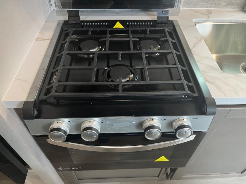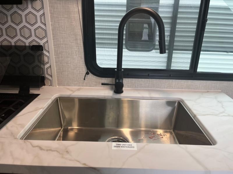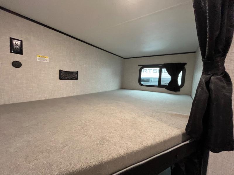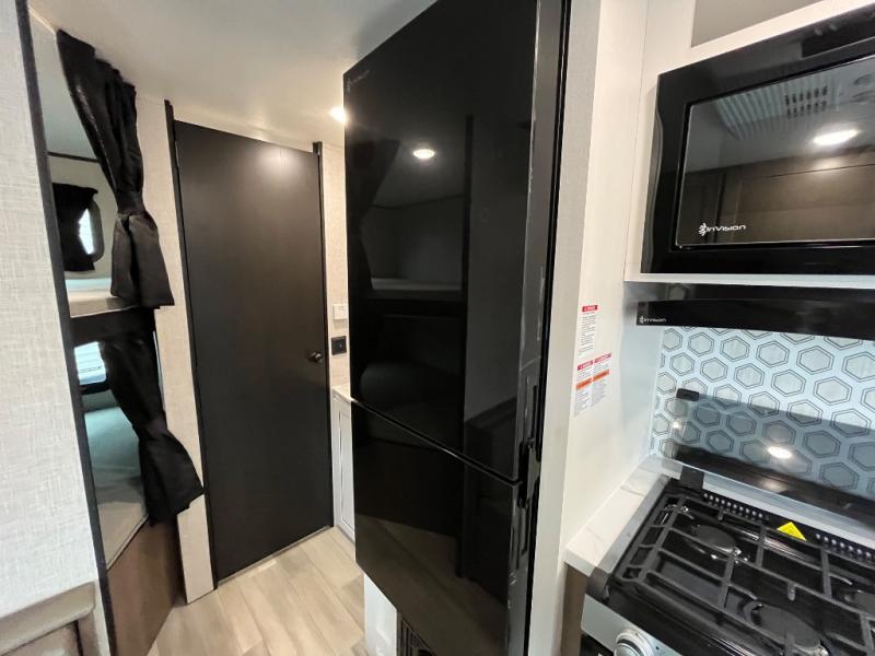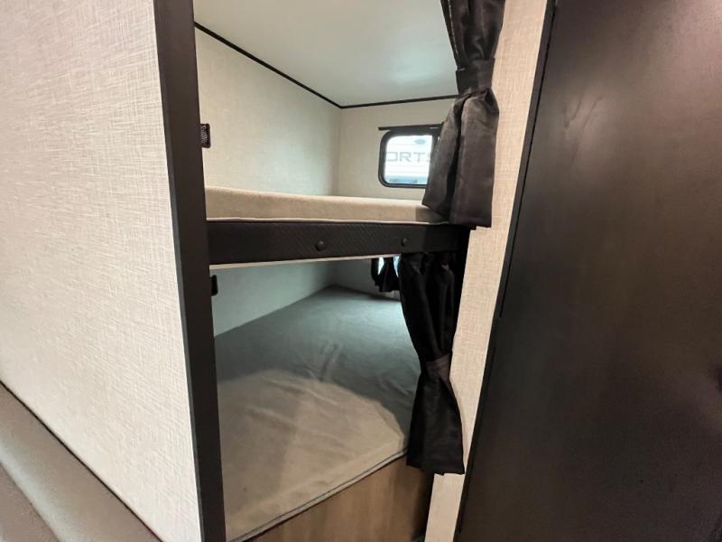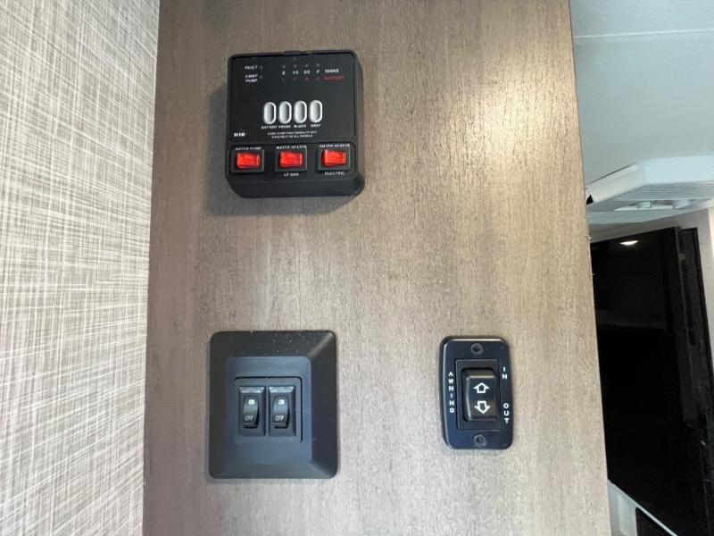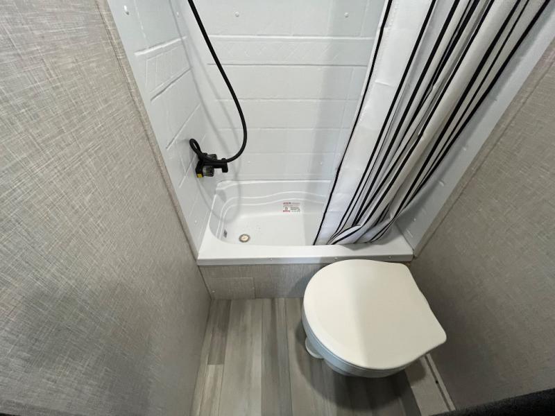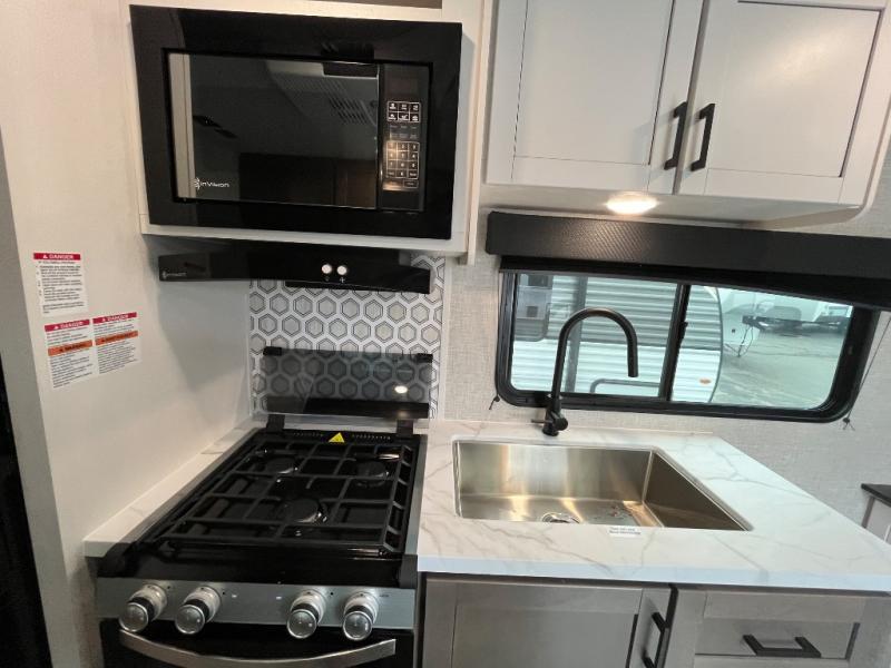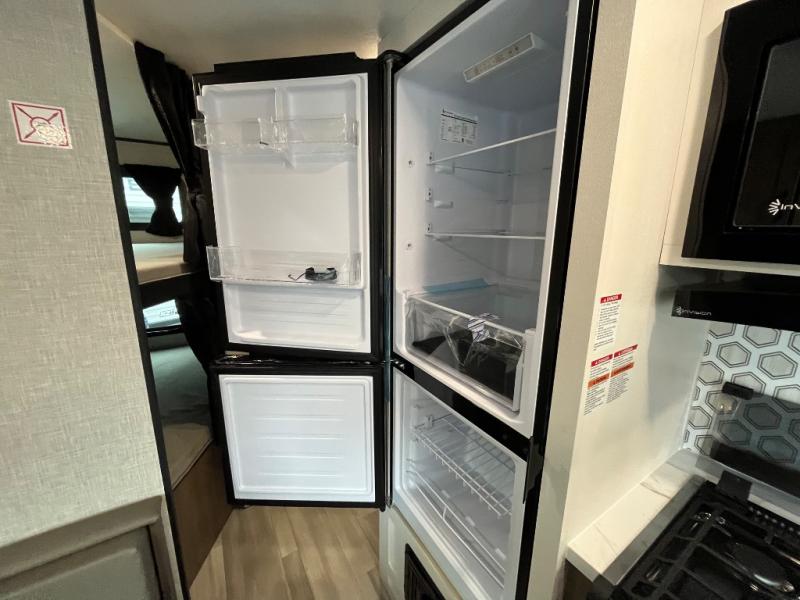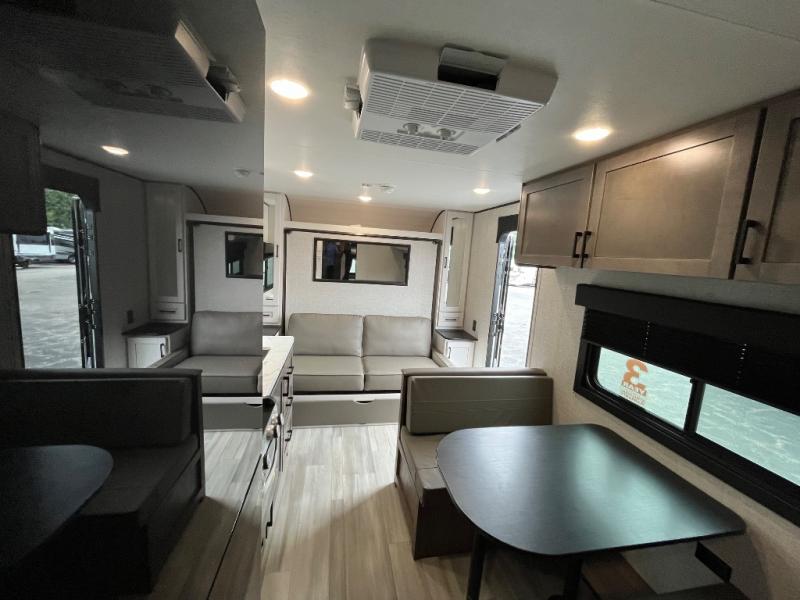 This versatile travel trailer is perfect for those wanting extra seating space during the day and extra sleeping space at night thanks to the Murphy bed. There are dual wardrobes on either side of the bed which will make it feel more like a bedroom at night, and double-size bunks can sleep four, so invite your friends along! Meals can be cooked on the three burner cooktop or in the microwave oven, and you'll appreciate an outdoor grill hookup with LP disconnect if you want to bring your own grill along.