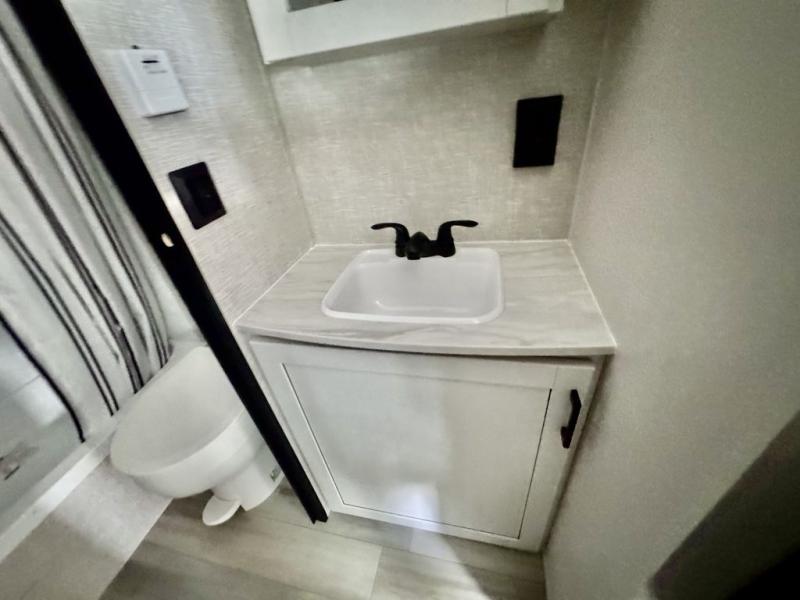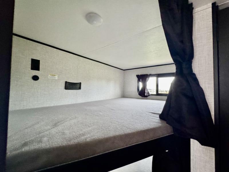 This versatile travel trailer is perfect for those wanting extra seating space during the day and extra sleeping space at night thanks to the Murphy bed. There are dual wardrobes on either side of the bed which will make it feel more like a bedroom at night, and double-size bunks can sleep four, so invite your friends along! Meals can be cooked on the three burner cooktop or in the microwave oven, and you'll appreciate an outdoor grill hookup with LP disconnect if you want to bring your own grill along.