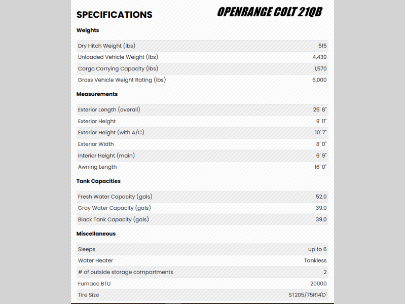 New 2026 Open Range RV Open Range Conventional 21QB Travel Trailer