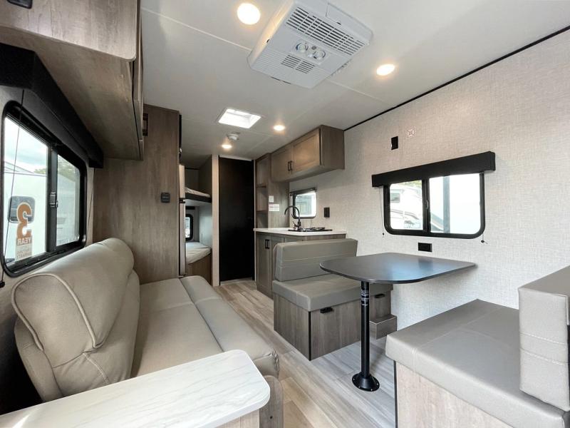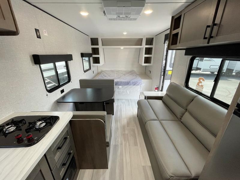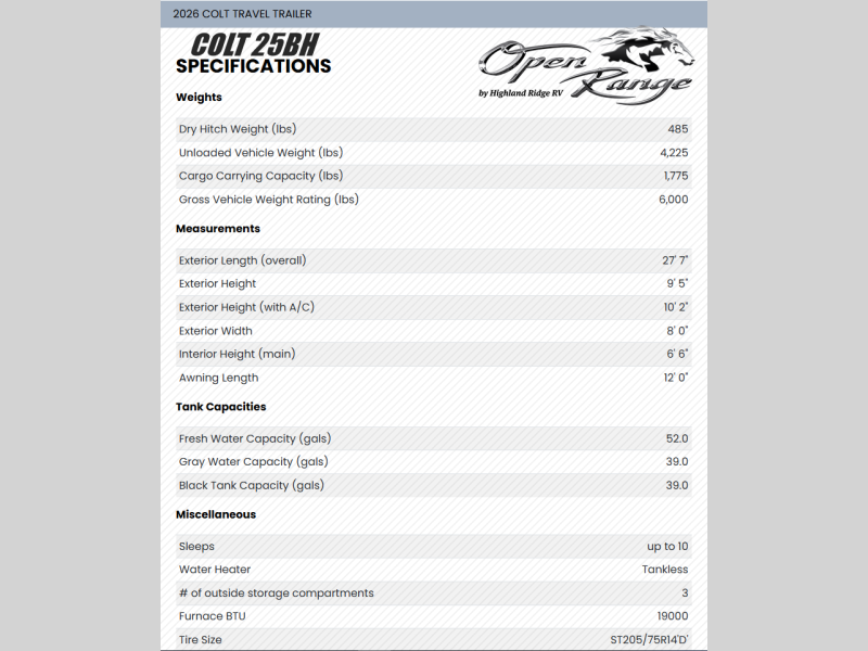Upgrade from tent camping and experience more comfort with the new Colt Travel Trailer Series, our most budget-friendly RV lineup. Available in single or double axle, standard or CTR Edition, the Colt offers 15 versatile floorplans designed to fit your lifestyle. Inside, you’ll enjoy residential-style features like solid countertops, hidden-hinge cabinetry, a high-rise kitchen faucet, and a 12V refrigerator. The main sleeping area includes a standard queen mattress for home-like comfort, while the bathroom is equipped with a marine-grade foot-flush toilet, tub/shower surround, skylight, vent, and an on-demand tankless water heater that delivers long hot showers. Durable swing-down solid steps provide a sturdy entry every time, giving you confidence with each adventure. Perfect for first-time RVers or anyone seeking an affordable, lightweight upgrade, the Colt Travel Trailer makes camping easy, comfortable, and accessible.