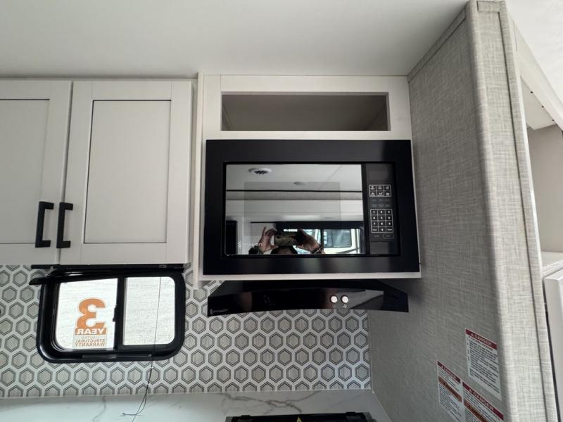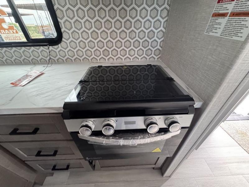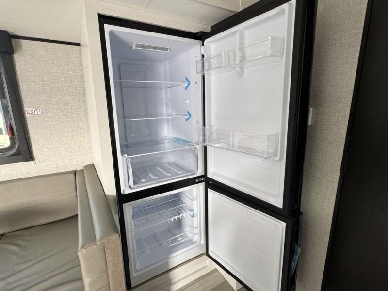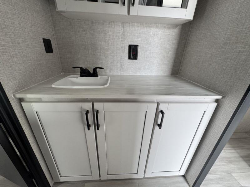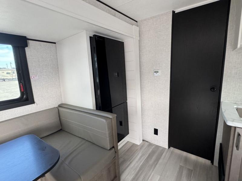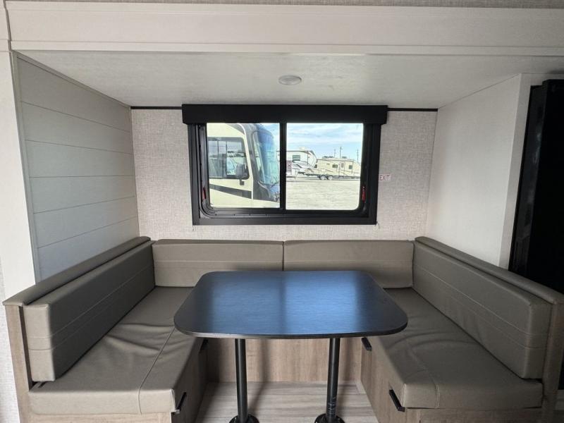 Eat, sleep, play, and relax in this travel trailer perfect for six! You will love to visit with friends on the tri-fold sofa and U-shaped dinette in the rear living area, and there is an entertainment center here where you can add an optional Smart TV. Freshen up in the spacious walk-through bath that includes a large shower and tons of counter space, and the front master bedroom will feel just like home. Here, you'll find a walk-around bed, dual wardrobes, and your own exterior entry door!