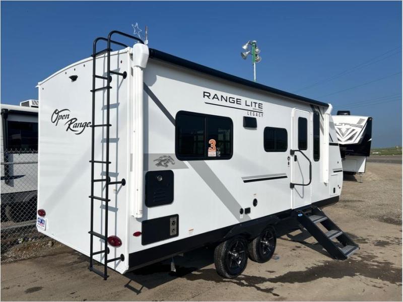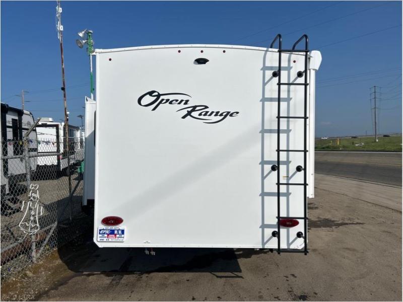With any Range Lite travel trailer by Open Range RV, you will enjoy comfort and convenience at every turn! Each one is built with vacuum bonded sidewalls with interior and exterior Azdel, a 2" TuffShell floor, and front diamond plating to help protect against rock and debris on the way to the campground. The Xtend l Solar Package includes a 200-watt solar panel with a 30-amp solar controller for off-grid capabilities, and you're sure to appreciate the tankless water heater onboard for endless hot showers. Head inside to enjoy residential cabinetry with large doors and drawers, roller shades with radiant barrier backer, Invision kitchen appliance package, and many more comforts! Choose the optional Legacy Package for a molded front cap, 5-point power stabilization system, solid surface countertops, and more optional features to further customize your travel trailer!