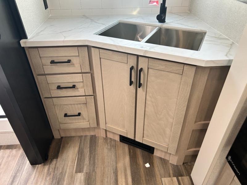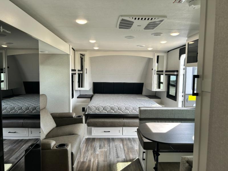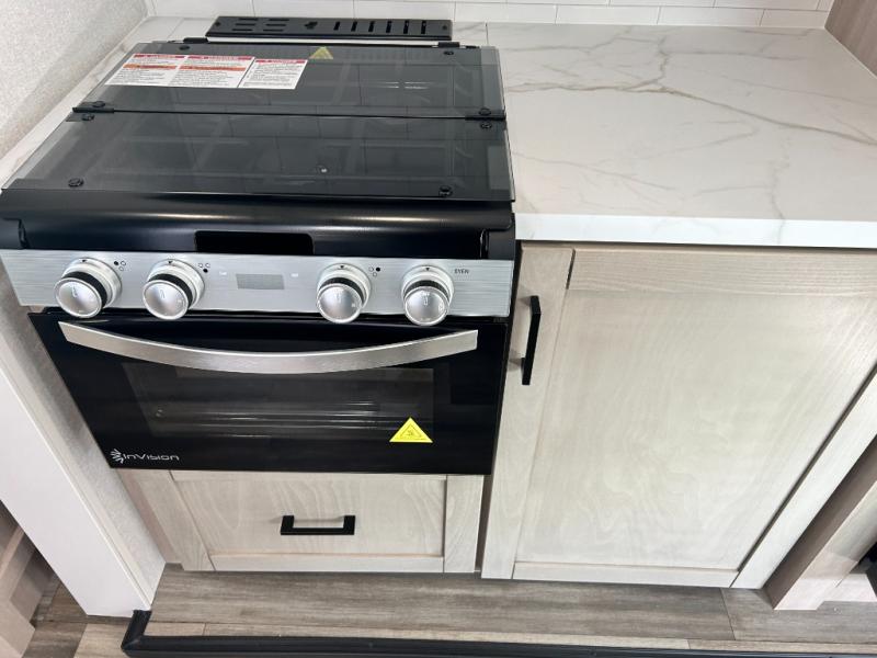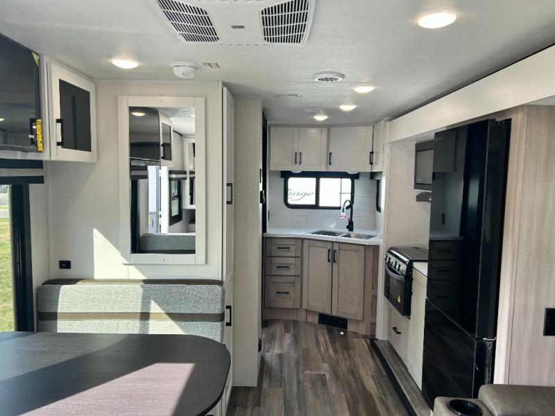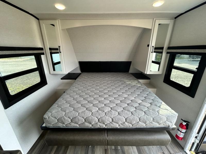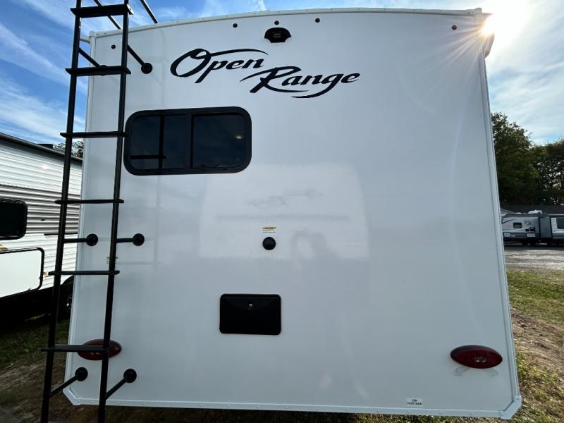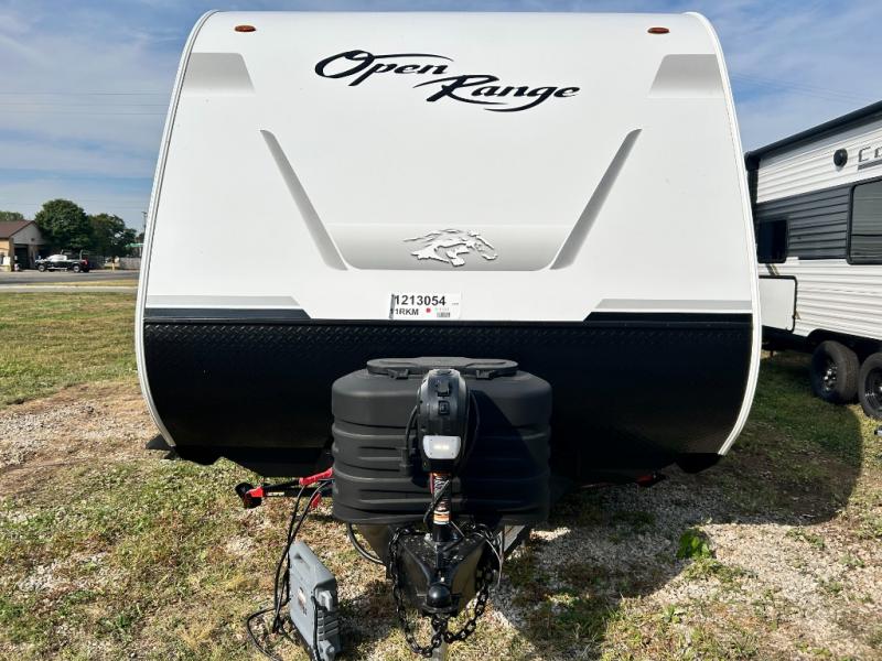 With any Range Lite travel trailer by Open Range RV, you will enjoy comfort and convenience at every turn! Each one is built with vacuum bonded sidewalls with interior and exterior Azdel, a 2" TuffShell floor, and front diamond plating to help protect against rock and debris on the way to the campground. The Xtend l Solar Package includes a 200-watt solar panel with a 30-amp solar controller for off-grid capabilities, and you're sure to appreciate the tankless water heater onboard for endless hot showers. Head inside to enjoy residential cabinetry with large doors and drawers, roller shades with radiant barrier backer, Invision kitchen appliance package, and many more comforts! Choose the optional Legacy Package for a molded front cap, 5-point power stabilization system, solid surface countertops, and more optional features to further customize your travel trailer!