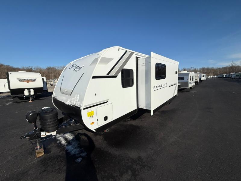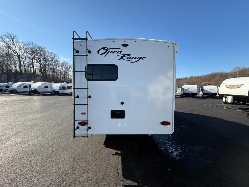 With any Range Lite travel trailer by Open Range RV, you will enjoy comfort and convenience at every turn! Each one is built with vacuum bonded sidewalls with interior and exterior Azdel, a 2" TuffShell floor, and front diamond plating to help protect against rock and debris on the way to the campground. The Xtend l Solar Package includes a 200-watt solar panel with a 30-amp solar controller for off-grid capabilities, and you're sure to appreciate the tankless water heater onboard for endless hot showers. Head inside to enjoy residential cabinetry with large doors and drawers, roller shades with radiant barrier backer, Invision kitchen appliance package, and many more comforts! Choose the optional Legacy Package for a molded front cap, 5-point power stabilization system, solid surface countertops, and more optional features to further customize your travel trailer!