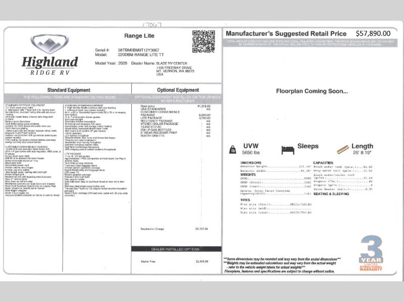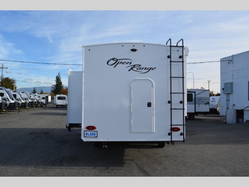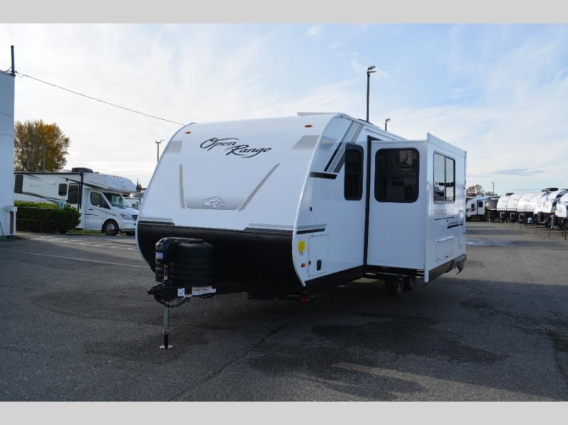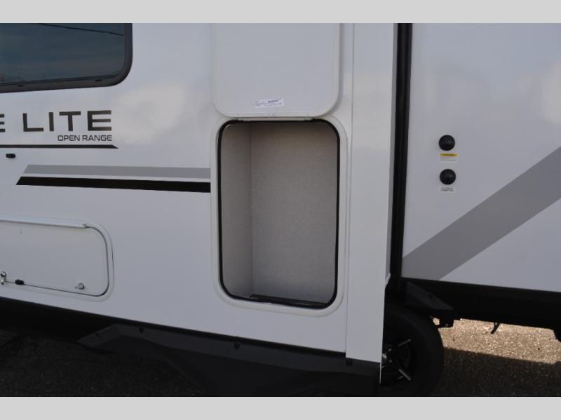 With any Range Lite travel trailer by Open Range RV, you will enjoy comfort and convenience at every turn! Each one is built with vacuum bonded sidewalls with interior and exterior Azdel, a 2" TuffShell floor, and front diamond plating to help protect against rock and debris on the way to the campground. The Xtend l Solar Package includes a 200-watt solar panel with a 30-amp solar controller for off-grid capabilities, and you're sure to appreciate the tankless water heater onboard for endless hot showers. Head inside to enjoy residential cabinetry with large doors and drawers, roller shades with radiant barrier backer, Invision kitchen appliance package, and many more comforts! Choose the optional Legacy Package for a molded front cap, 5-point power stabilization system, solid surface countertops, and more optional features to further customize your travel trailer!