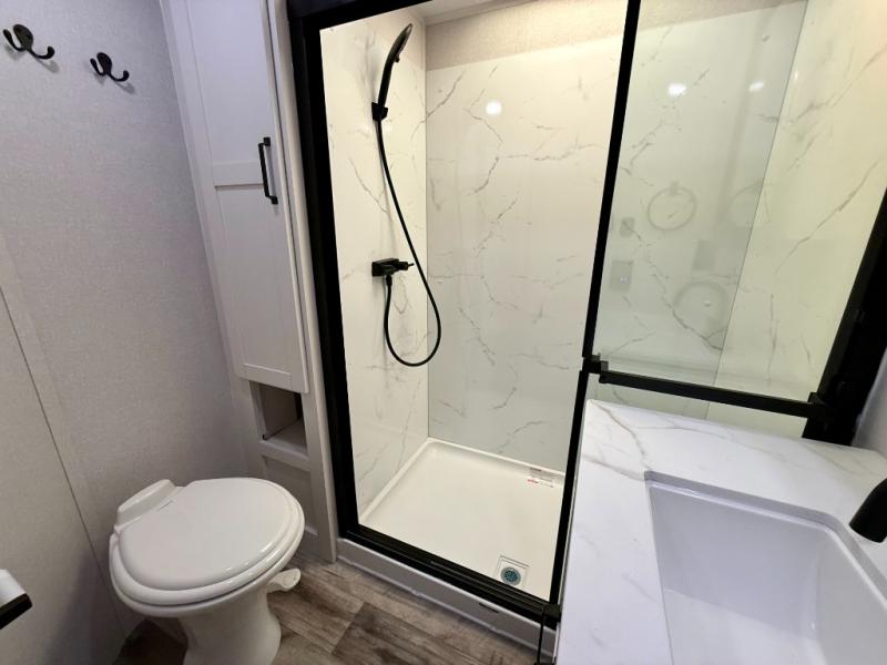 For the perfect balance of strength, comfort, and efficiency, take a look at the Roamer fifth wheels by Open Range RV! Each one features TuffShell vacuum bonded laminated construction, an automotive style front cap with max turn radius, and an Alpa Ply TPO roof membrane, the thickest in the industry! You will also appreciate the Cool Force System and Thermal Seal zero-degree tested weather protection to help you extend your camping season. And the mandatory Traveling Package with a MORryde CRE-3000 rubberized suspension, Dexter Axles, and E-Z Lube hubs will make towing easier than ever. You'll be met with residential features inside, including a glass shower door, solid surface countertop(s), 100% no floor heat vents, and residential vinyl flooring throughout!