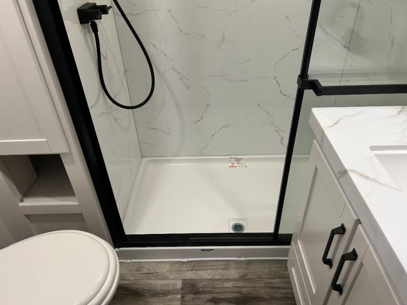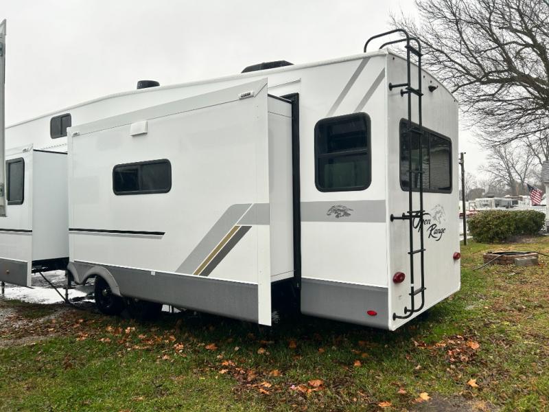 For the perfect balance of strength, comfort, and efficiency, take a look at the Roamer fifth wheels by Open Range RV! Each one features TuffShell vacuum bonded laminated construction, an automotive style front cap with max turn radius, and an Alpa Ply TPO roof membrane, the thickest in the industry! You will also appreciate the Cool Force System and Thermal Seal zero-degree tested weather protection to help you extend your camping season. And the mandatory Traveling Package with a MORryde CRE-3000 rubberized suspension, Dexter Axles, and E-Z Lube hubs will make towing easier than ever. You'll be met with residential features inside, including a glass shower door, solid surface countertop(s), 100% no floor heat vents, and residential vinyl flooring throughout!