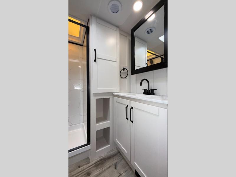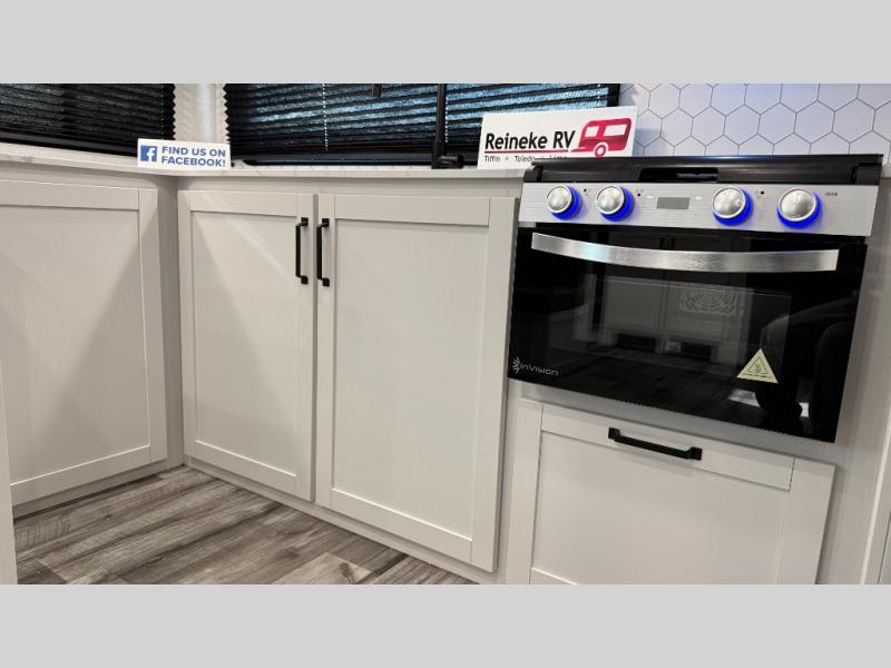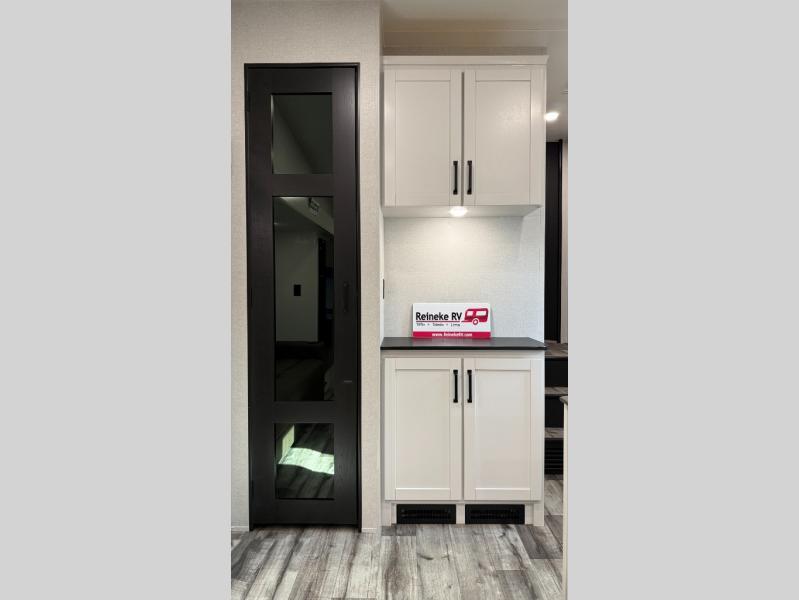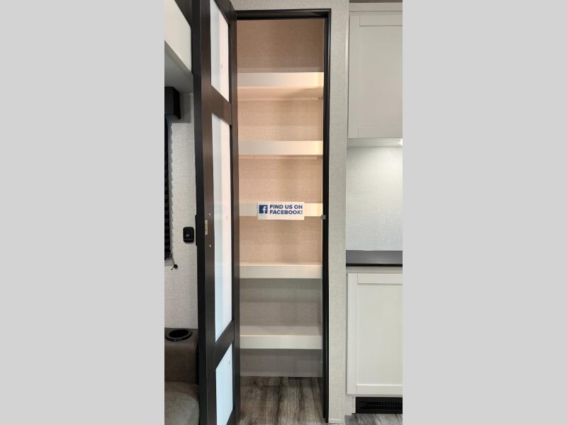 With Upgrade 2nd 15K Bedroom A/C. Rear Kitchen, 200W Xtend l Solar Package, Residential Queen Bed w/ Wardrobe Slide, Kitchen Pantry, Booth Dinette, Tri-Fold Sofa, Thermal Seal, Tuff Shell, Dexter Axles, MORyde Step Above and Convenience Package