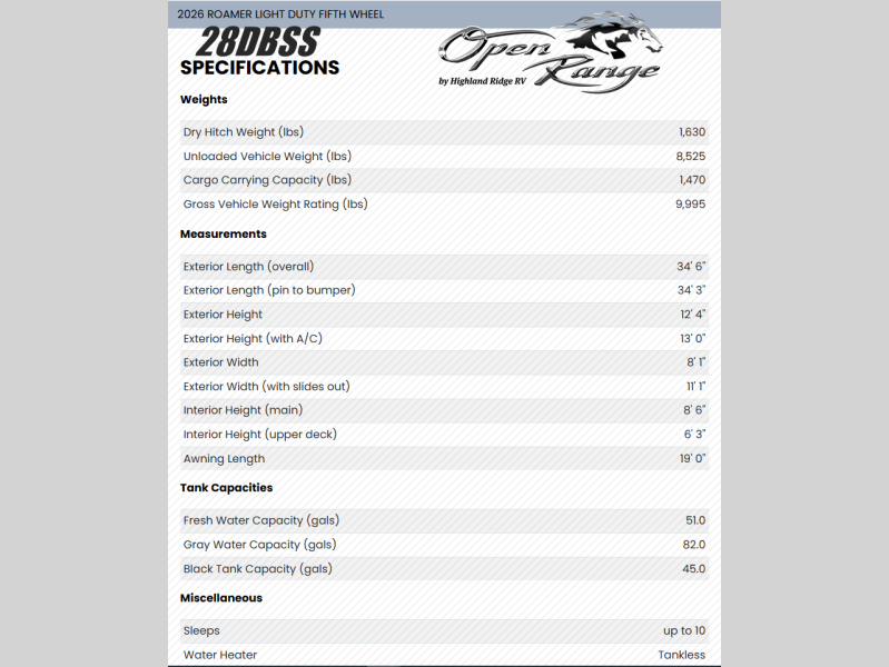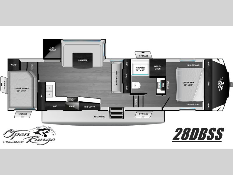 Open Range RV Roamer Light Duty fifth wheel 28DBSS highlights:
