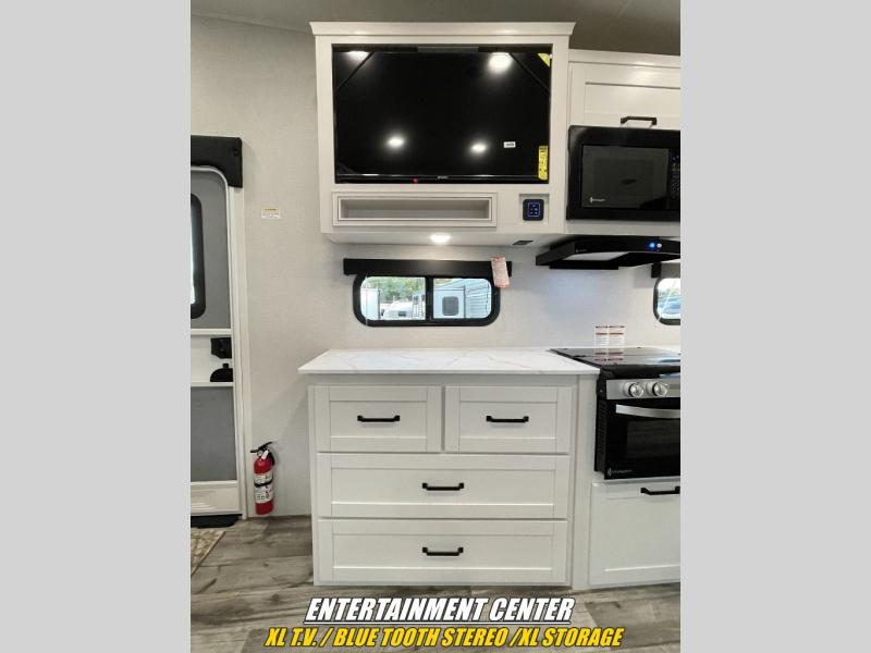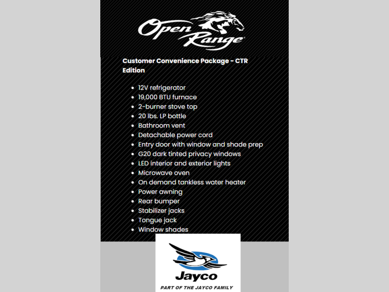 With any Roamer Light Duty travel trailer or fifth wheel by Open Range RV, you will enjoy a lighter tow weight, while still enjoying at-home comforts and conveniences! The TuffShell vacuum bonded laminated construction is reinforced with heavy-duty fiberglass and welded aluminum frames, helping extend the life of your RV. You will also appreciate the Thermal Seal zero-degree tested weather protection plus the Cool Force system for outstanding protection year around. The mandatory Customer Convenience Package includes many hassle-free features, such as an on-demand water heater, a Keyed-Alike lock system, and an Xtend l Solar Package with a 200-watt solar panel and 30-amp solar controller for off-grid power when you need it. Each Roamer Light Duty also includes residential vinyl flooring throughout, USB and USB-C 12V charging ports with multiple locations throughout, 100% no floor heat vents, and 4" interior ceiling can lighting with 4000k lumen to keep your space well illuminated!