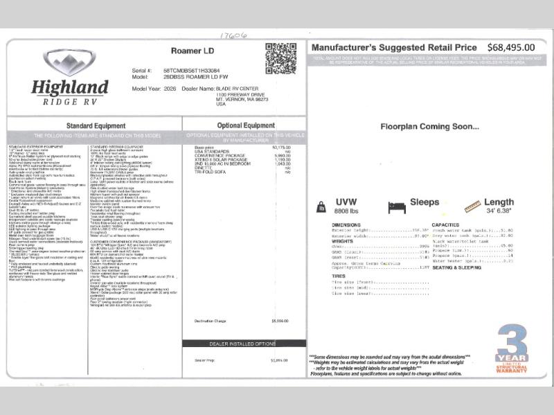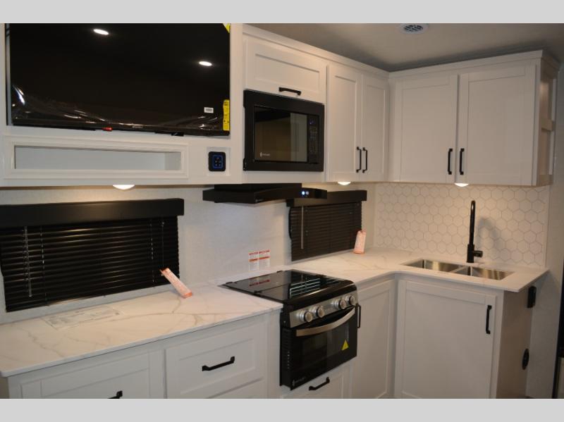 With any Roamer Light Duty travel trailer or fifth wheel by Open Range RV, you will enjoy a lighter tow weight, while still enjoying at-home comforts and conveniences! The TuffShell vacuum bonded laminated construction is reinforced with heavy-duty fiberglass and welded aluminum frames, helping extend the life of your RV. You will also appreciate the Thermal Seal zero-degree tested weather protection plus the Cool Force system for outstanding protection year around. The mandatory Customer Convenience Package includes many hassle-free features, such as an on-demand water heater, a Keyed-Alike lock system, and an Xtend l Solar Package with a 200-watt solar panel and 30-amp solar controller for off-grid power when you need it. Each Roamer Light Duty also includes residential vinyl flooring throughout, USB and USB-C 12V charging ports with multiple locations throughout, 100% no floor heat vents, and 4" interior ceiling can lighting with 4000k lumen to keep your space well illuminated!