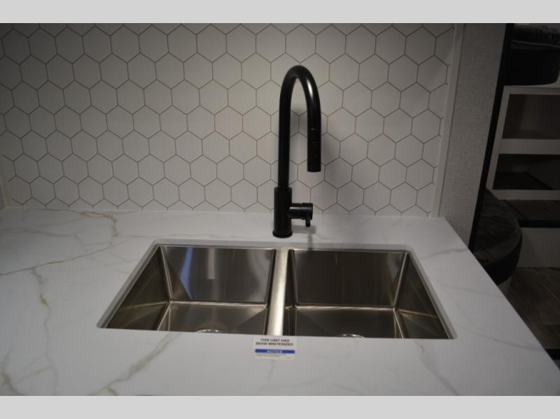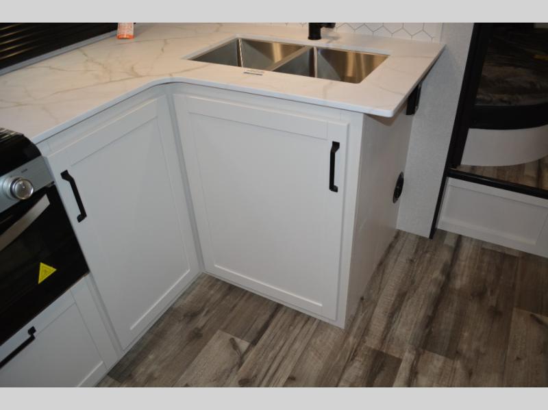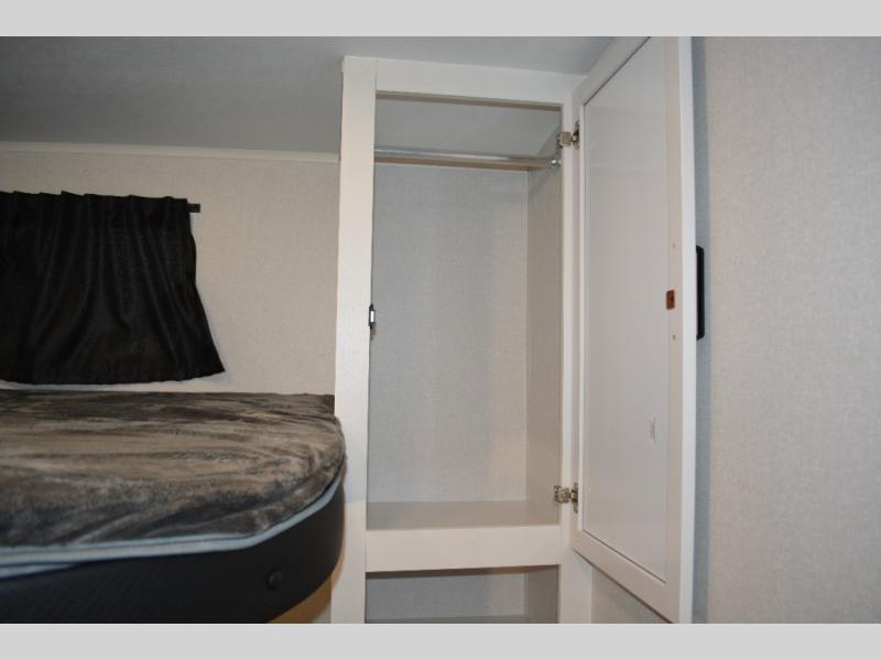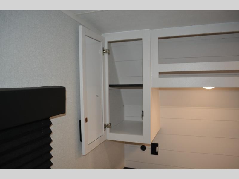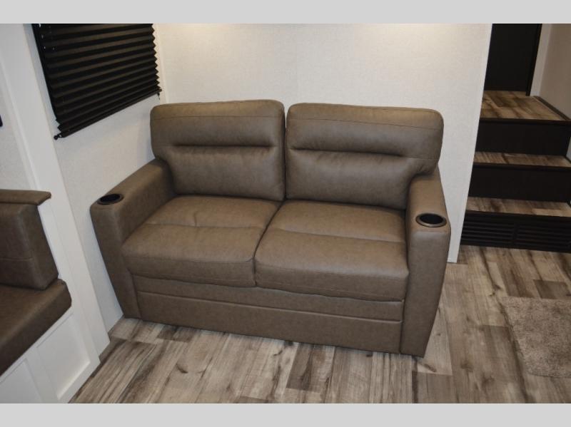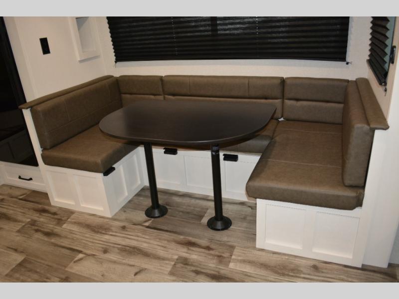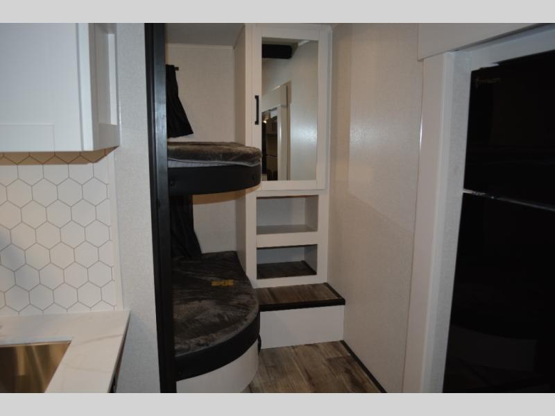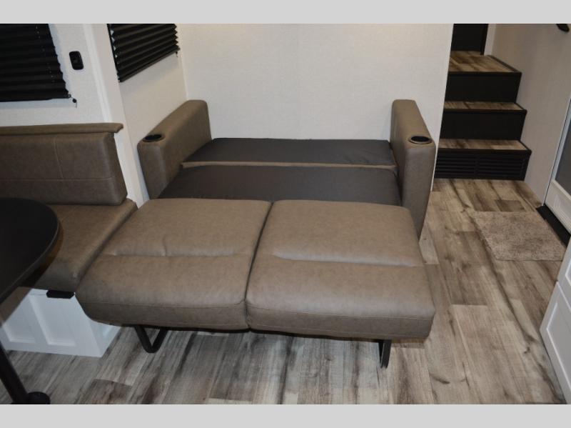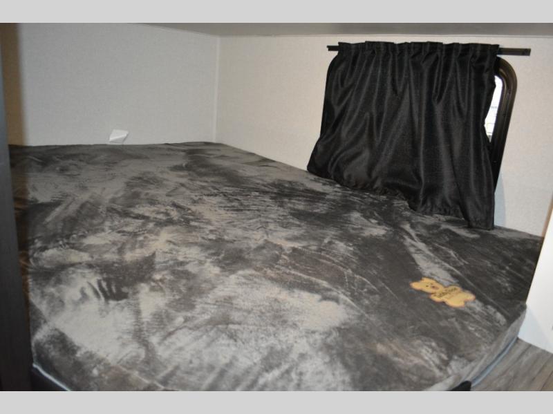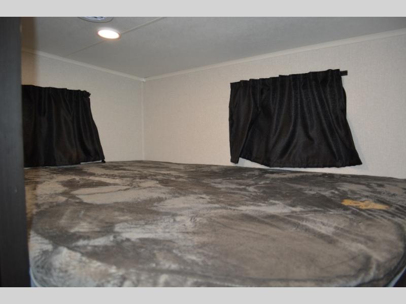 You can easily sleep ten in this fifth wheel, making it perfect for a family or larger group of friends! You can claim the front private bedroom with a queen bed for yourselves, while your guests take the rear double-size bunks. The combined kitchen and living area includes all the appliances needed to create meals each day, along with a U-shaped dinette and tri-fold sofa for extra seating and sleeping spaces. You will also find ample storage space throughout, including overhead cabinets, a bunkhouse wardrobe, bedroom storage, and four exterior storage compartments!