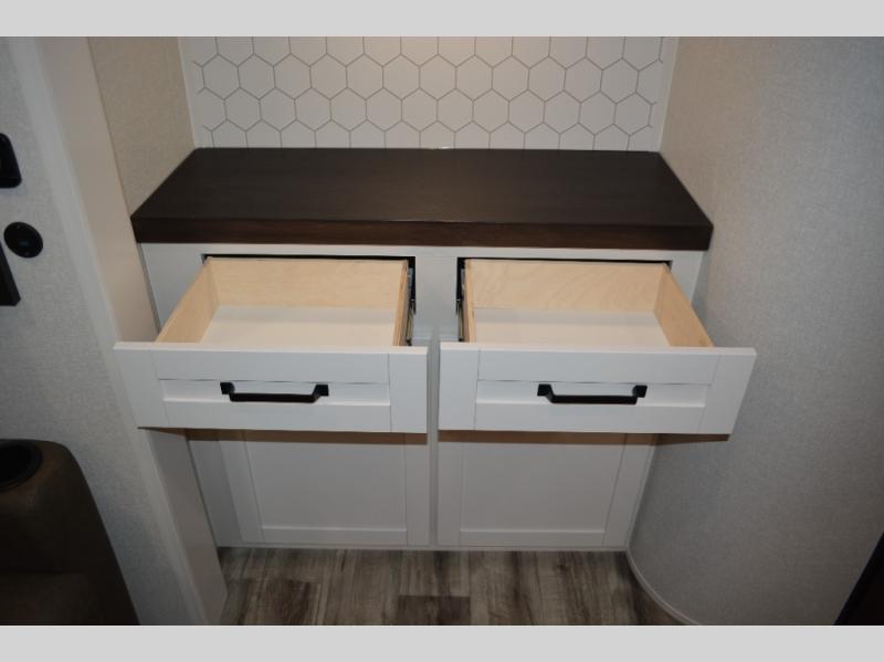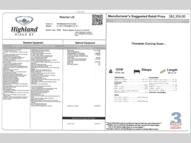 With any Roamer Light Duty travel trailer or fifth wheel by Open Range RV, you will enjoy a lighter tow weight, while still enjoying at-home comforts and conveniences! The TuffShell vacuum bonded laminated construction is reinforced with heavy-duty fiberglass and welded aluminum frames, helping extend the life of your RV. You will also appreciate the Thermal Seal zero-degree tested weather protection plus the Cool Force system for outstanding protection year around. The mandatory Customer Convenience Package includes many hassle-free features, such as an on-demand water heater, a Keyed-Alike lock system, and an Xtend l Solar Package with a 200-watt solar panel and 30-amp solar controller for off-grid power when you need it. Each Roamer Light Duty also includes residential vinyl flooring throughout, USB and USB-C 12V charging ports with multiple locations throughout, 100% no floor heat vents, and 4" interior ceiling can lighting with 4000k lumen to keep your space well illuminated!