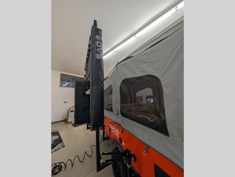 The Opus Camper OPUS folding pop-up camper is created for adventure! An all-terrain chassis, off-road tires, and independent coil suspension allow you to go wherever you want to go. The compact design makes it easy to take the OPUS down back roads and beaten paths, but once you settle on a destination, the OPUS opens up into an accommodating base camp for you and your fellow travelers. As you travel, you'll find that the extra storage components will be extremely useful.