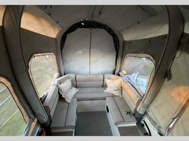 From the rapid deployment of the AIR inflation technology, the tent on this OPUS folding pop-up camper is easily ready in minutes, and all you have to do is open and secure the two double-size tent beds and turn on the switch. You will experience more storage than you thought could be found in a pop-up and on-board water. The cook can whip up a warm meal on the four-burner cooktop within the outside stainless-steel kitchen which includes a stainless-steel chopping board and pantry at arm's reach, and then you can dine at the U-shaped leatherette lounge that can easily be converted into extra sleeping space for two. There are several windows to open up your space to enjoy the weather, and there are several options to customize your OPUS just like you want.