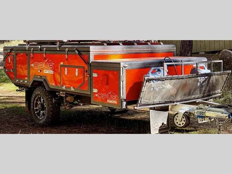 The Opus Camper OPUS folding pop-up camper is created for adventure! An all-terrain chassis, off-road tires, and independent coil suspension allow you to go wherever you want to go. The compact design makes it easy to take the OPUS down back roads and beaten paths, but once you settle on a destination, the OPUS opens up into an accommodating base camp for you and your fellow travelers. As you travel, you'll find that the extra storage components will be extremely useful.