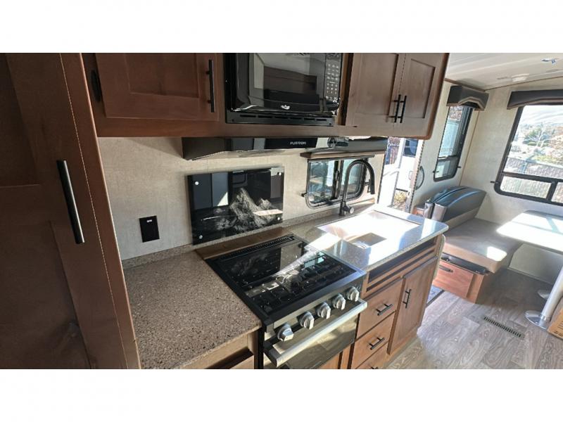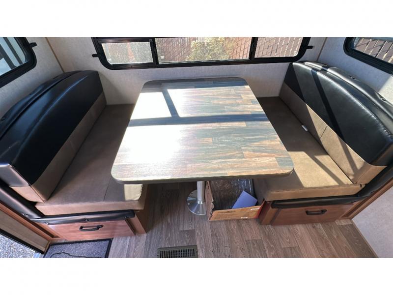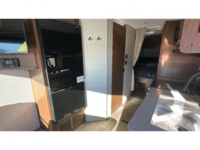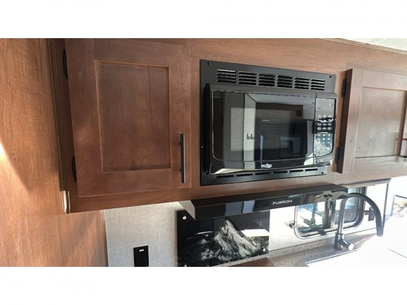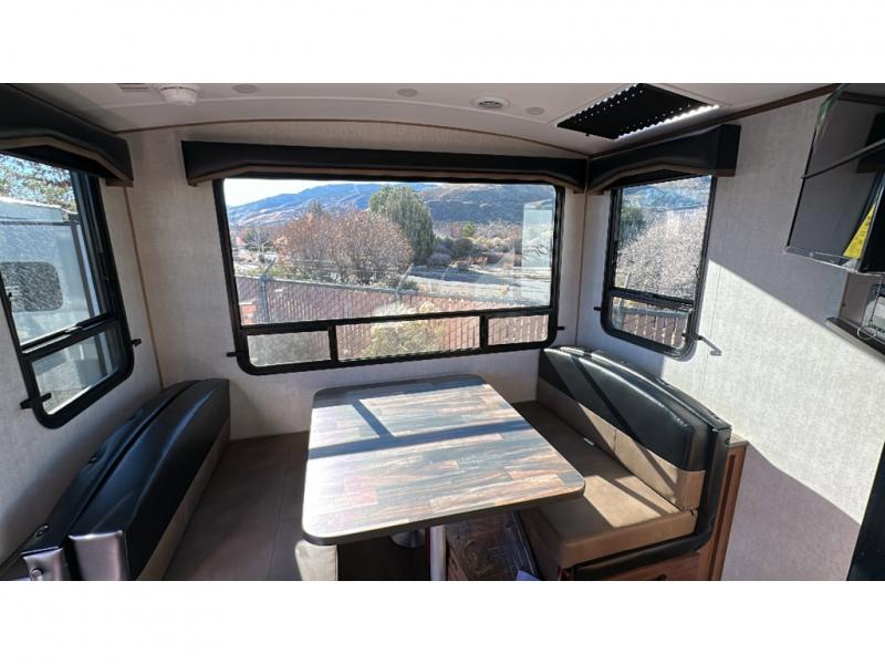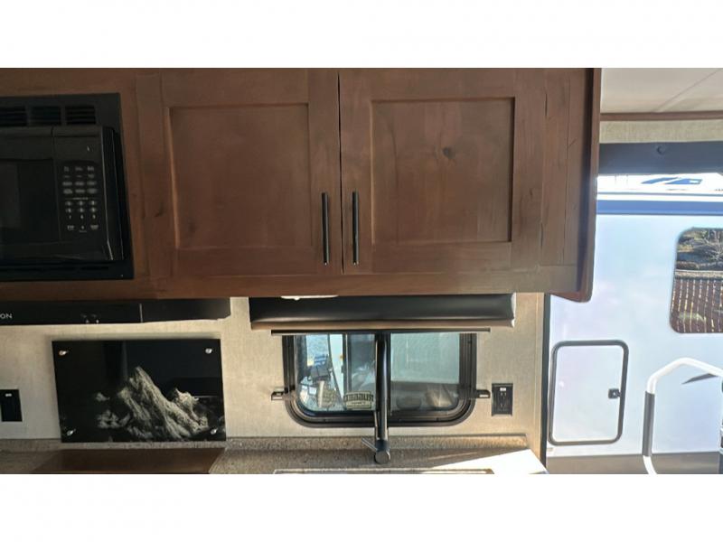 Load up your gear, clothing and food to start your journey exploring for the perfect spot to setup camp with this Back Country. You and your traveling companion will love the queen bed up front with a privacy curtain, plus there is storage on each side. If you are a family, one to two kiddos can sleep on the rear 45" x 84" mountain dinette that offers beautiful views out of the windows. The kitchen offers everything to keep everyone fed including a flip-up counter for extra work space. There is a full bathroom to keep everyone clean, plus a swing-out 32" TV for inside entertainment. And don't forget about the 17' awning when you want to relax outside with some protection from the sun.