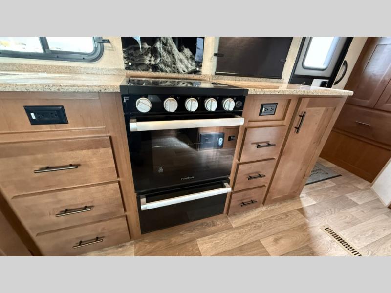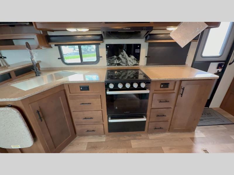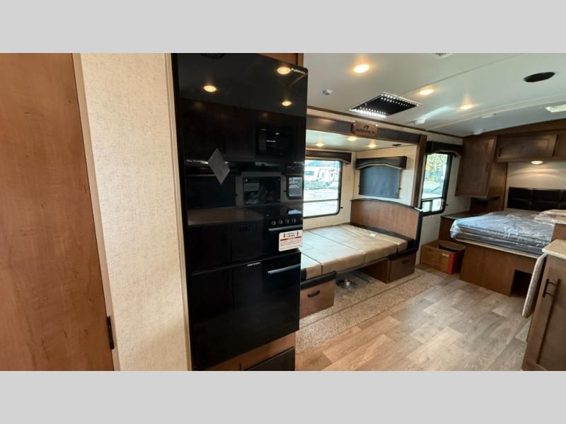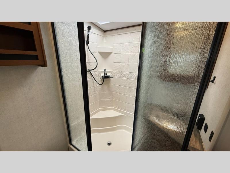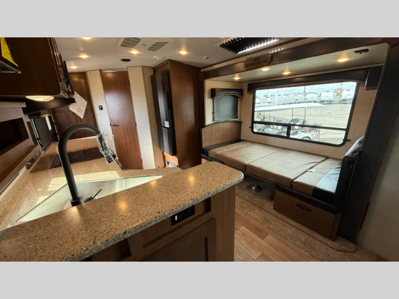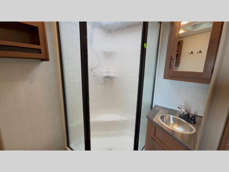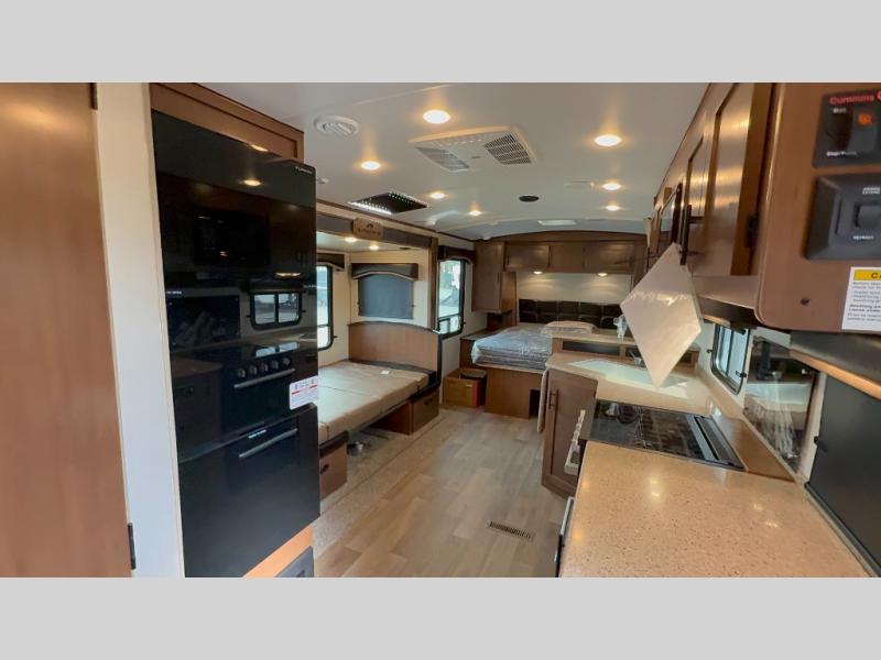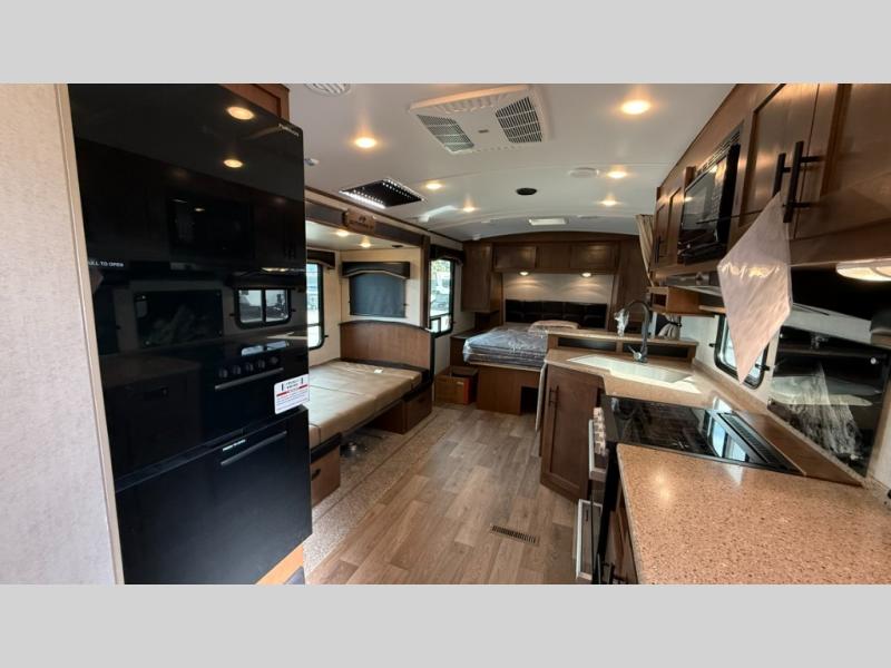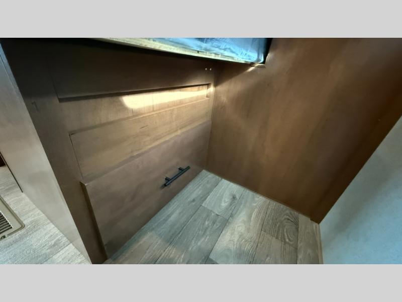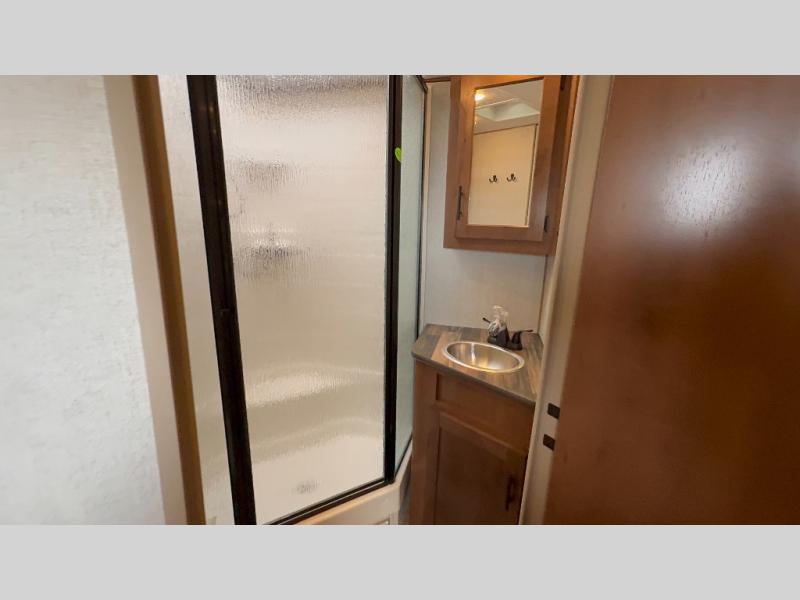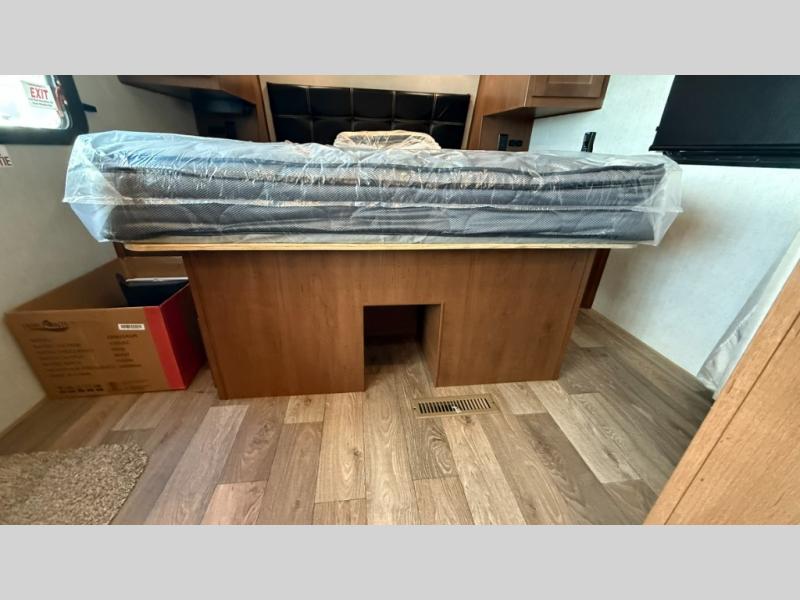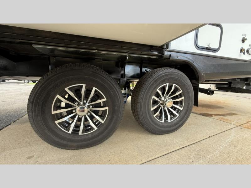 This is the perfect adventurist travel trailer with off-road and off-grid capability, plus the queen bed up front sleeps two and allows you to rest up after all the fun outdoors! You will find storage on each side as well as USB ports to keep your iPad and cell phones charged. The swing-out 32" TV can be viewed from pretty much anywhere giving you inside entertainment, and the mountain dinette slide out offers dining and sleeping space plus more interior floor space to move about. The cook can make meals in the galley kitchen with a flip-up counter, and everyone will stay refreshed with the full bathroom in the rear corner next to the handy entry closet.