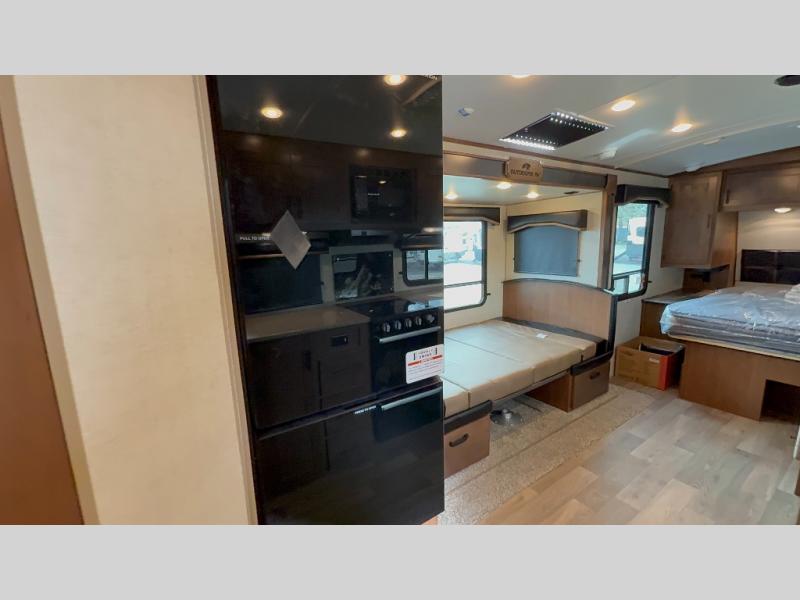Each Back Country MTN TRX travel trailer by Outdoors RV is designed for camping off-grid plus you can go off-road, camp in national forest or even enjoy primitive style camping! Built with a custom-built cambered off-road HD 8' chassis, Mountain Extreme thermal pane windows, 16" Goodyear Endurance radial tires, plus more Climate Designed Four Seasons features allowing you to camp during any season. Some other standout features include a 24" Xtra tall power tongue jack, an HD full fiberglass front cap, and a Cummins Onan 3.6k on-board LP generator to keep your adventures going. Some of the interior highlights include a Mountain Comfort premium mattress, an easy access Home Defense bed safe, vaulted radius ceiling that provides approximately 5" of additional headroom for a spacious interior, a Bluetooth sound system, and LG solid surface kitchen countertops for style and easy care.