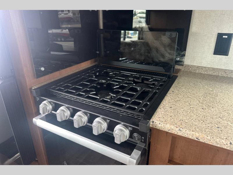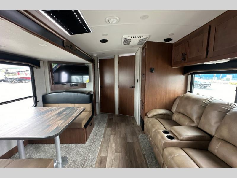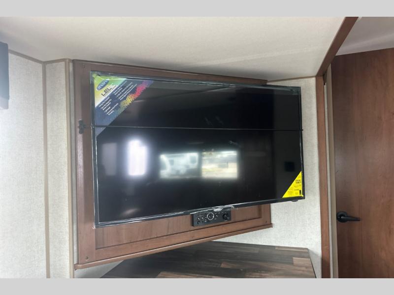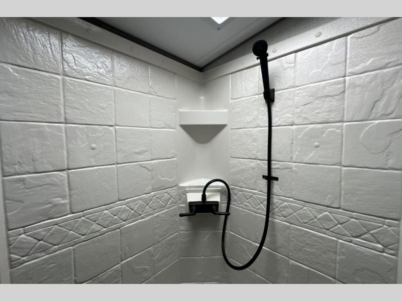 Calling all adventure seekers, this Back Country allows you to choose your destination be it at a state park or off-grid, thanks to the generator and solar panel. You and your friends or family of four will have enough sleeping space inside after your outdoor fun is over. You can take turns getting cleaned up in the double entry bathroom, then relax on the sleeper sofa or the mountain dinette that is within a slide, which also includes the entertainment center and 40" TV. The second entry leads into the front bedroom where you will enjoy privacy, storage, USB ports and your own queen bed. The furniture doubles as sleeping space, and you might like to add the residential sofa option in place of the sleeper sofa if you prefer that type of comfort.