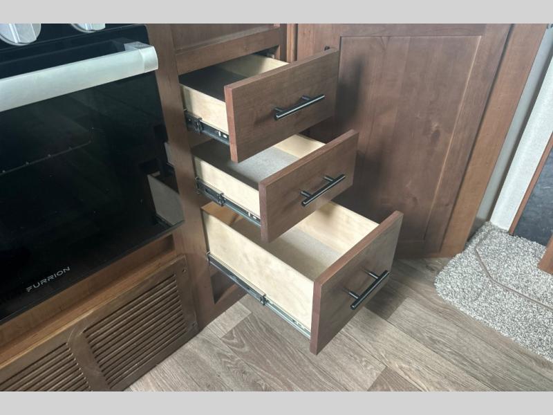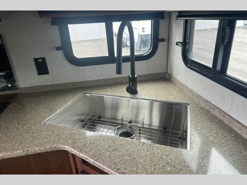 Each Back Country MTN TRX travel trailer by Outdoors RV is designed for camping off-grid plus you can go off-road, camp in national forest or even enjoy primitive style camping! Built with a custom-built cambered off-road HD 8' chassis, Mountain Extreme thermal pane windows, 16" Goodyear Endurance radial tires, plus more Climate Designed Four Seasons features allowing you to camp during any season. Some other standout features include a 24" Xtra tall power tongue jack, an HD full fiberglass front cap, and a Cummins Onan 3.6k on-board LP generator to keep your adventures going. Some of the interior highlights include a Mountain Comfort premium mattress, an easy access Home Defense bed safe, vaulted radius ceiling that provides approximately 5" of additional headroom for a spacious interior, a Bluetooth sound system, and LG solid surface kitchen countertops for style and easy care.