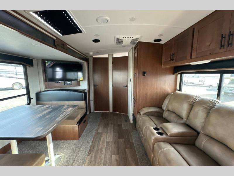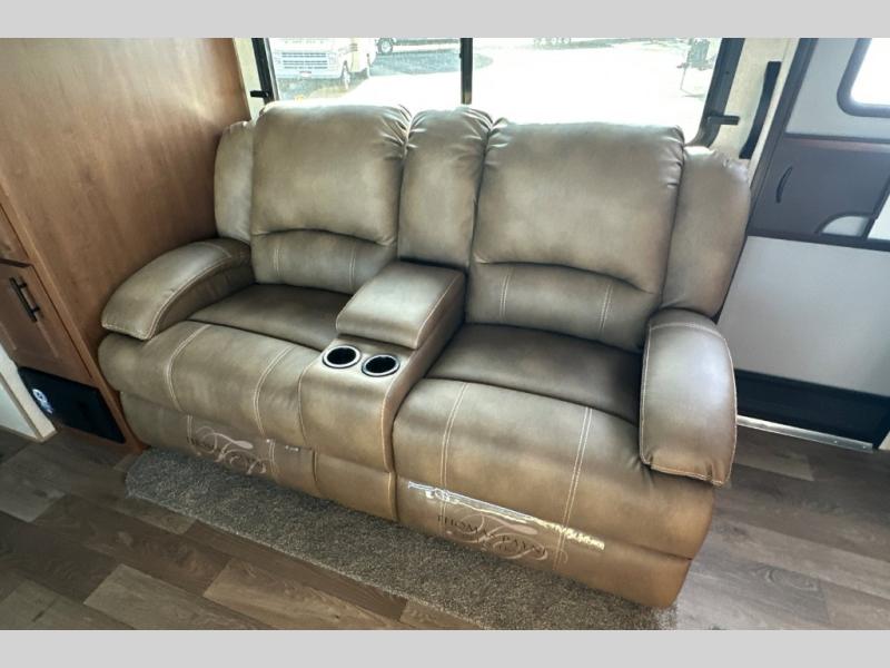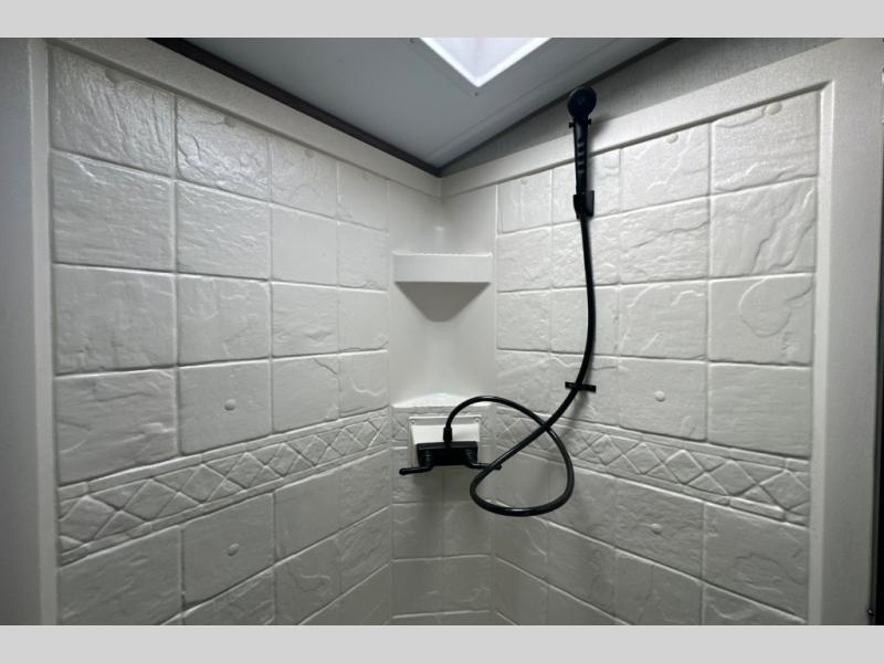 Calling all adventure seekers, this Back Country allows you to choose your destination be it at a state park or off-grid, thanks to the generator and solar panel. You and your friends or family of four will have enough sleeping space inside after your outdoor fun is over. You can take turns getting cleaned up in the double entry bathroom, then relax on the sleeper sofa or the mountain dinette that is within a slide, which also includes the entertainment center and 40" TV. The second entry leads into the front bedroom where you will enjoy privacy, storage, USB ports and your own queen bed. The furniture doubles as sleeping space, and you might like to add the residential sofa option in place of the sleeper sofa if you prefer that type of comfort.