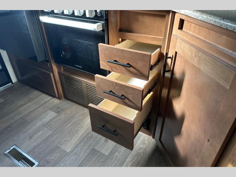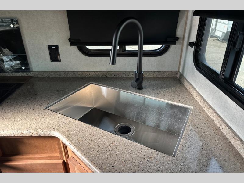 Each Back Country MTN TRX travel trailer by Outdoors RV is designed for camping off-grid plus you can go off-road, camp in national forest or even enjoy primitive style camping! Built with a custom-built cambered off-road HD 8' chassis, Mountain Extreme thermal pane windows, 16" Goodyear Endurance radial tires, plus more Climate Designed Four Seasons features allowing you to camp during any season. Some other standout features include a 24" Xtra tall power tongue jack, an HD full fiberglass front cap, and a Cummins Onan 3.6k on-board LP generator to keep your adventures going. Some of the interior highlights include a Mountain Comfort premium mattress, an easy access Home Defense bed safe, vaulted radius ceiling that provides approximately 5" of additional headroom for a spacious interior, a Bluetooth sound system, and LG solid surface kitchen countertops for style and easy care.
