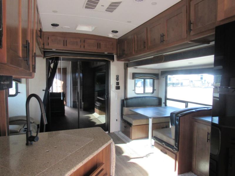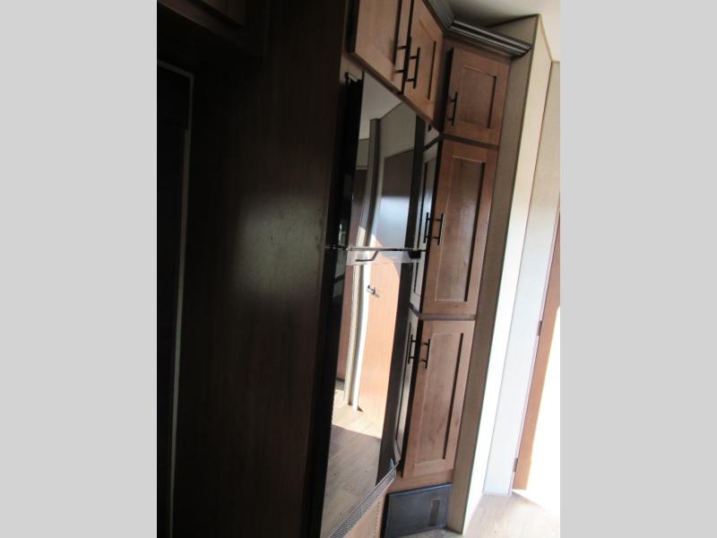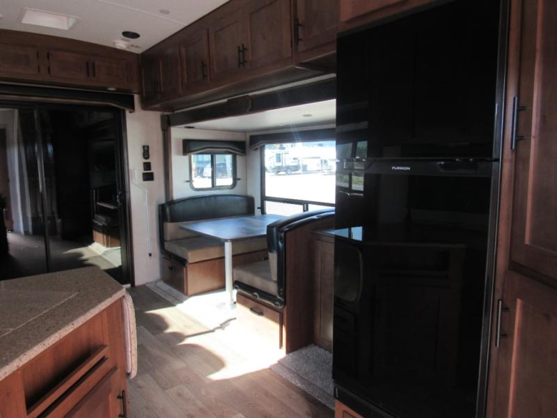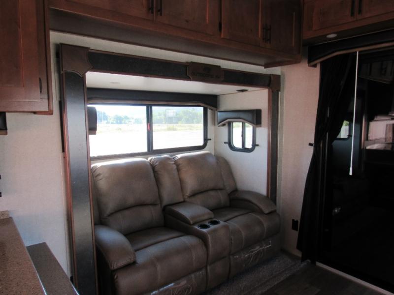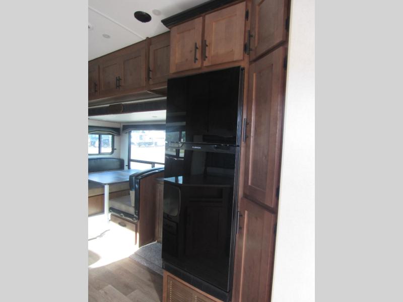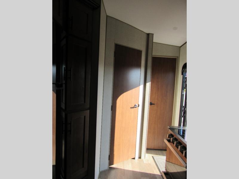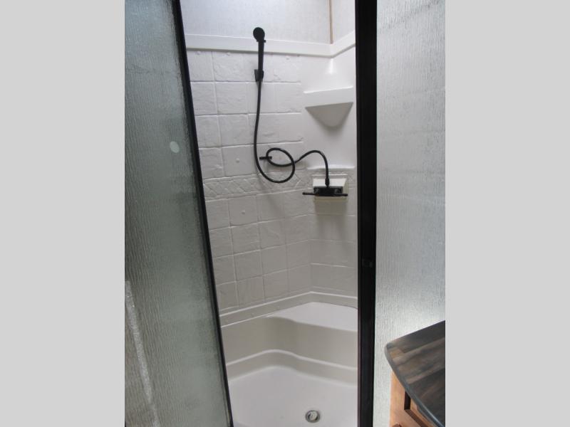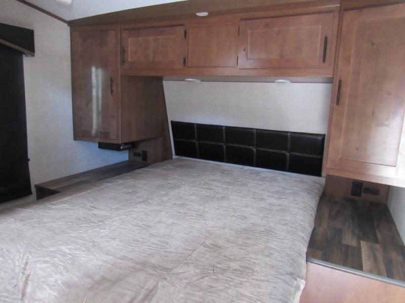 You'll love every minute spent in this cozy travel trailer. There is a rear patio deck with a rail system and stairs, along with a residential sliding glass door that leads to the rear living area. Your crew can play a game at the booth dinette or relax on the residential sofa with built-in recliners. If you're needing more sleeping space, just choose the optional sleeper sofa in place of the standard sofa. There are even optional TRX recliners if want that option as well! The fully-equipped kitchen includes everything you need to make meals each day, plus a 12V refrigerator and pantry for food storage. The flip-up counter will also come in handy when you need extra counter space. Head up front to find the dual entry bath and front master bedroom with a queen bed!