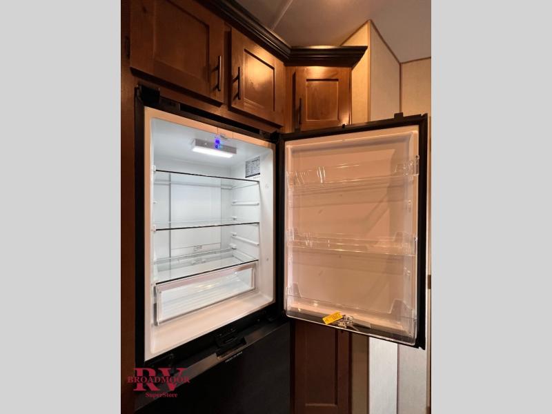 You'll feel right at home in this spacious travel trailer for three to four! Once you've set up the 20' awning, you can enjoy the 83" x 94" patio deck with residential sliding glass doors, a rail kit plus stairs. Head inside to make lunch on the cooktop, grab a cold drink from the 10 cu. ft. 12V refrigerator, and dine at the mountain dinette! There are also two easy glide TRX recliners where you can relax in the evenings with a good book. A dual entry bath gives you an entrance from the kitchen plus a private entrance into the front bedroom. There is a 60" x 80" queen bed and plenty of storage spaces for your shoes, clothes and personal belongings!