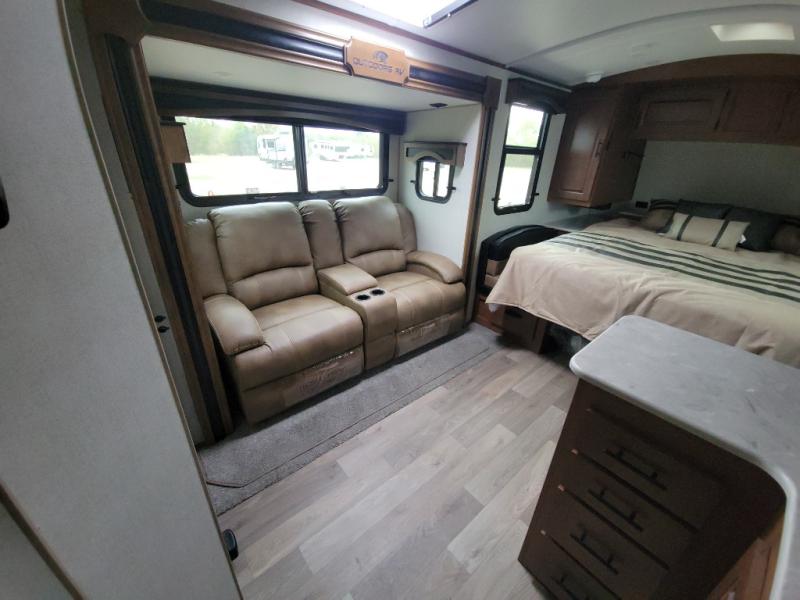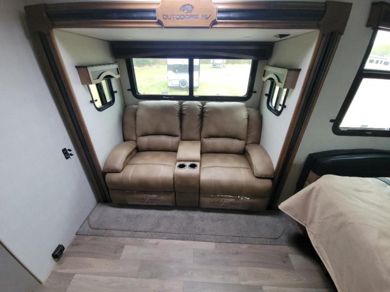 Each Back Country MTN TRX Titanium Series travel trailer by Outdoors RV is designed for camping off-grid plus you can go off-road, camp in national forest or even enjoy primitive style camping! There is a Lamilux HD 4000 high-gloss silver fiberglass exterior, sleek design frameless thermal pane windows, and a silver fiberglass front cap that gives these units a premium trim! You will also appreciate the Ground Control auto leveling and the wireless rear and side(s) turn camera system for hassle-free parking! The Mountain Lodge interior features hardwood throughout and all-leather designs, plus there are LG solid surface countertops, a premium memory foam mattress, and an upgraded shower head to name a few comforts!